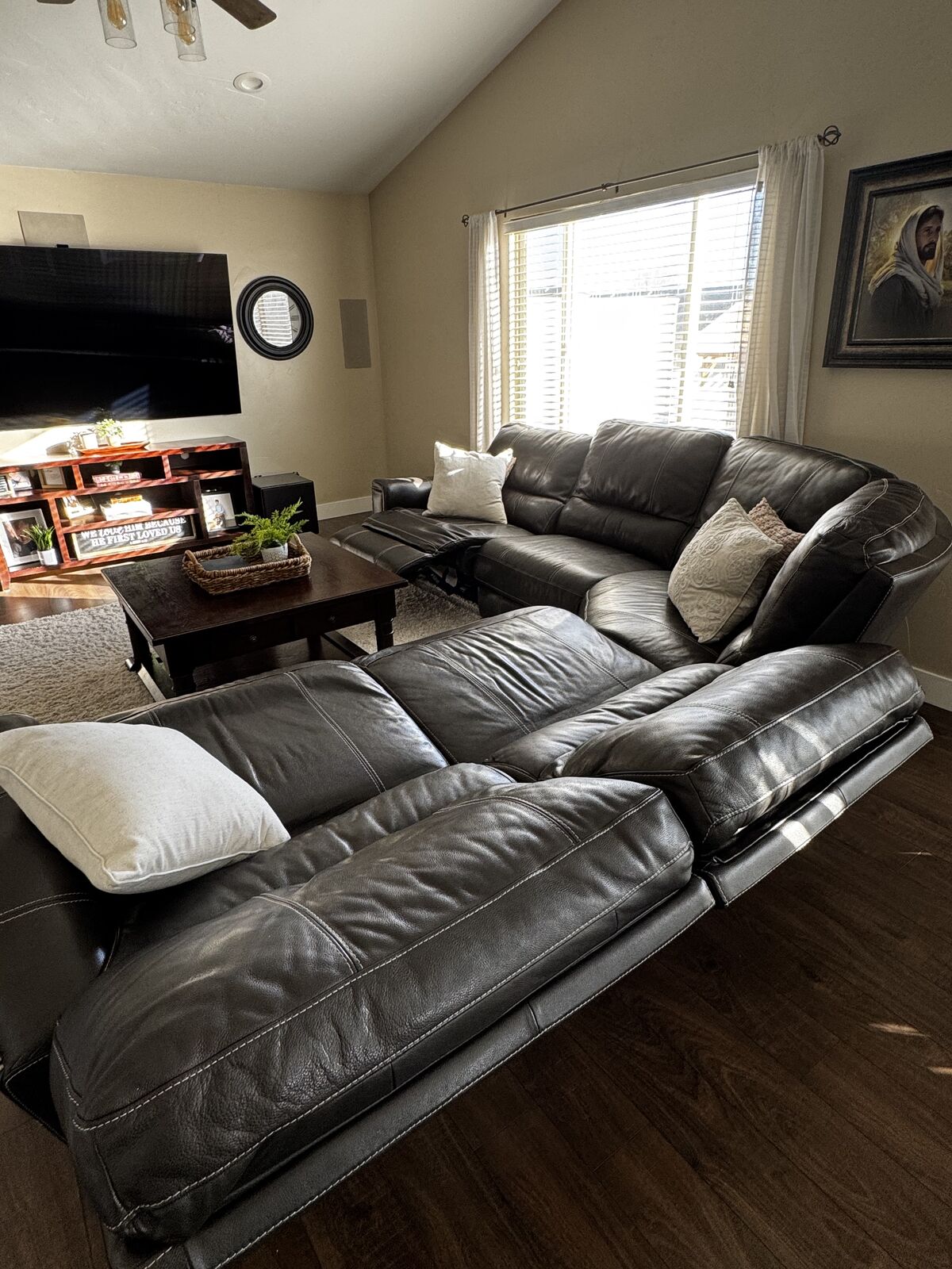 VenmoLeather sectional 3 pieces power recline (neck also has power adjustment) Approx 10 1/2 feet by 10 1/2 feet USB ports