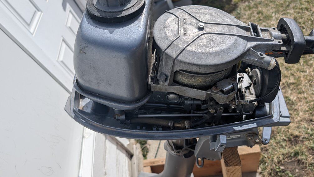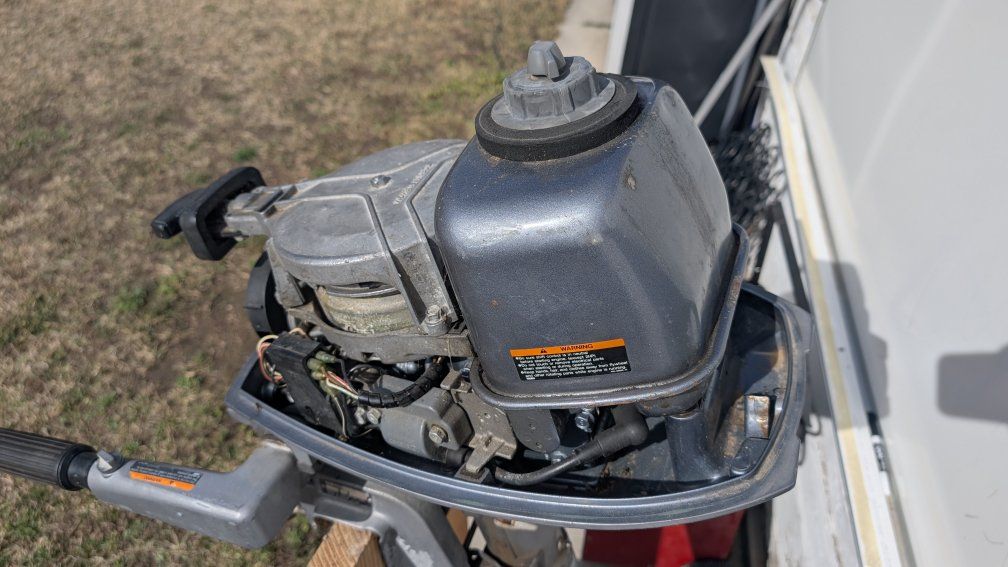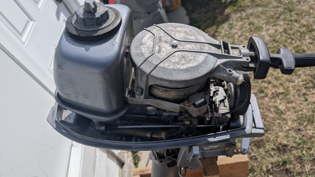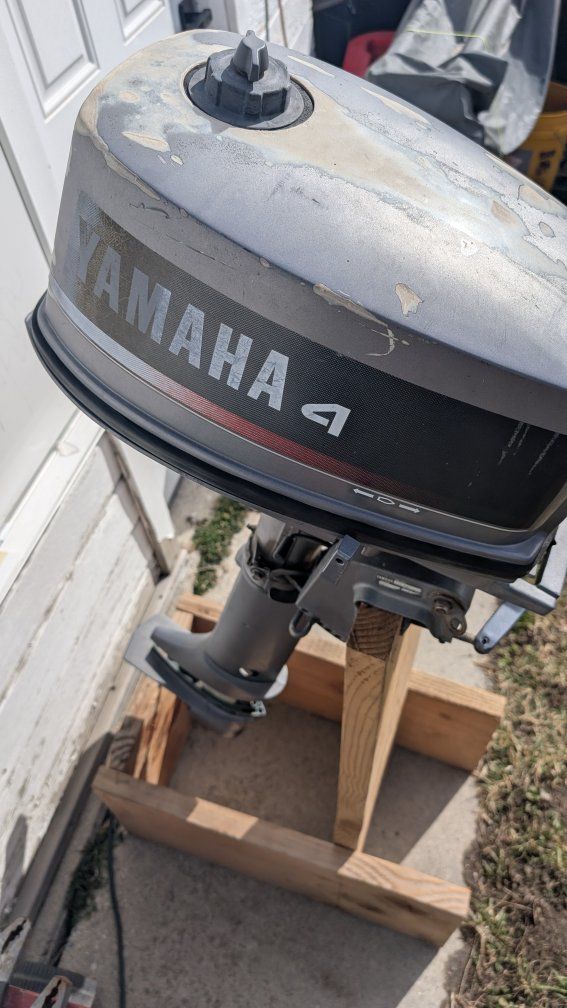 2 stroke. starts easily. Comes with two different speed props.