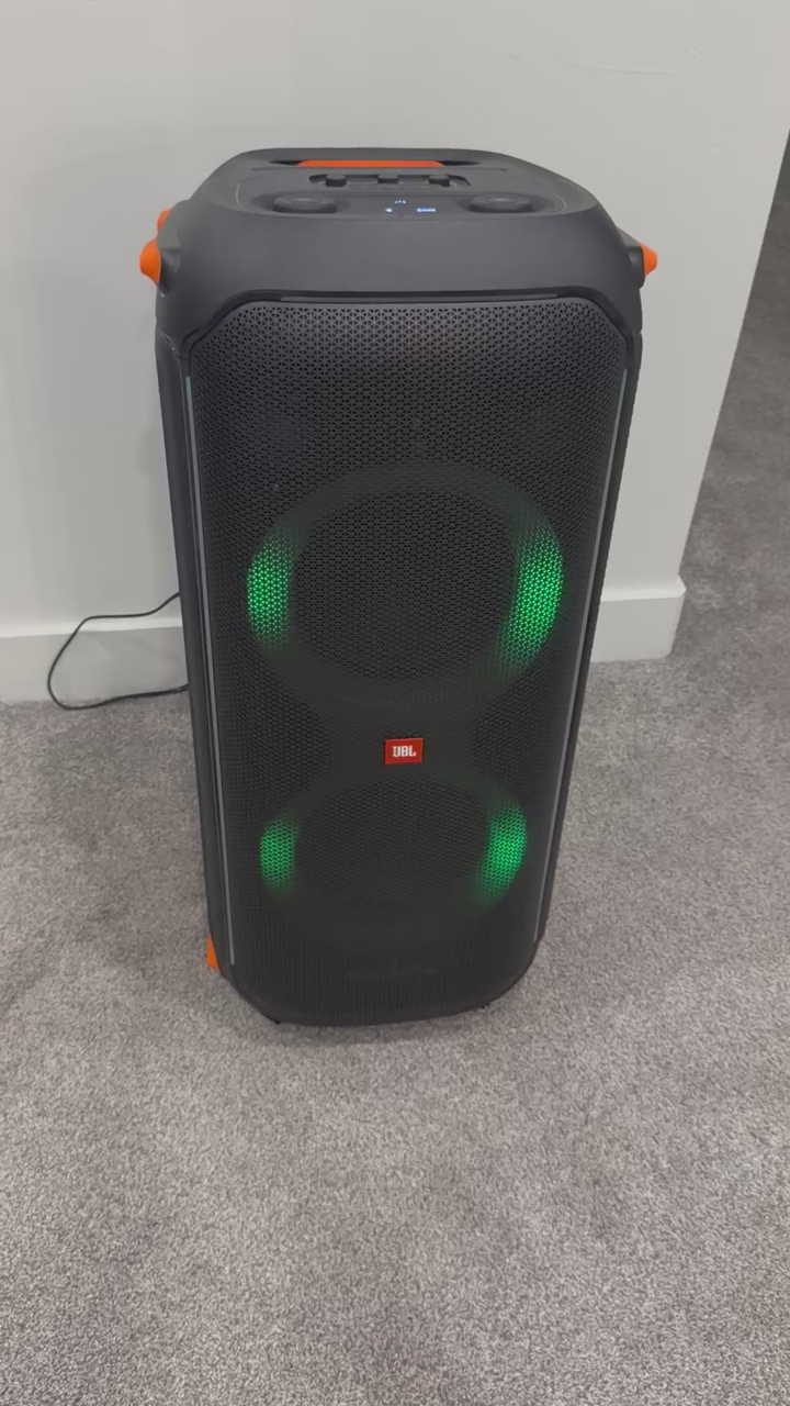 Elevate your parties with the JBL PartyBox 710 Portable Party Speaker. Designed for music lovers and entertainers, this premium speaker delivers a powerful 800W of JBL Pro Sound. Built-in wheels and a sturdy handle make it easy to transport. The splashproof IPX4 design ensures the PartyBox 710 can withstand accidental spills and weather, so you never have to stop the fun. Plug in a mic or guitar for interactive performances – perfect for karaoke nights. Combine two PartyBox 710 speakers wirelessly for an even more immersive stereo experience.