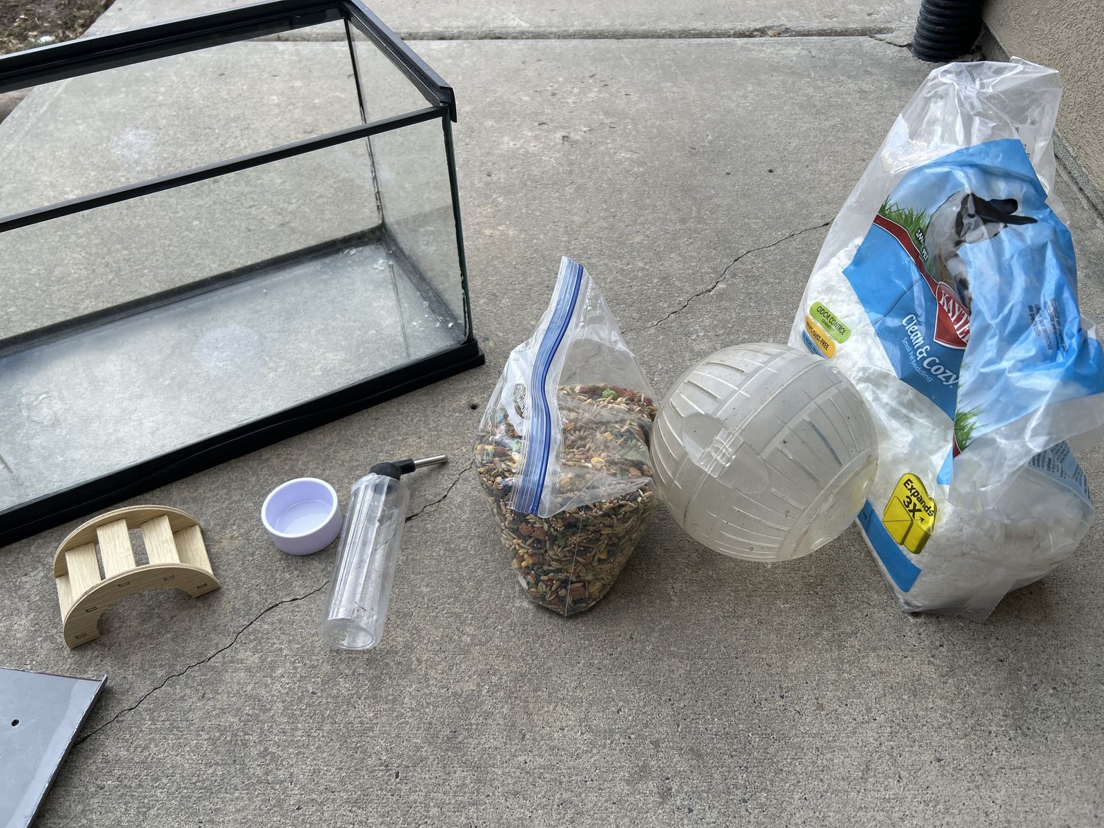 VenmoGlass cage that we used for our hamster that’s no longer with us. Comes with remaining food and bedding, water bottle, food dish, and stair toy.