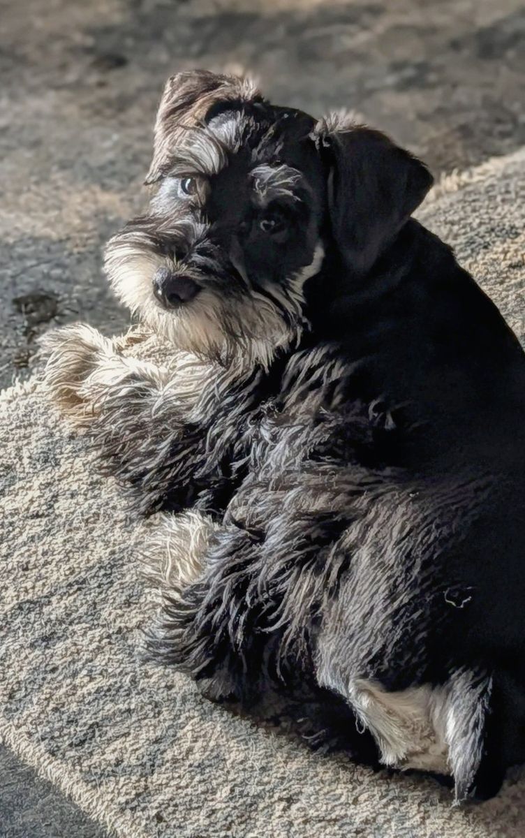 VenmoWe have 1 AKC mini schnauzer sweet and spicy female They love to play and adventure and will snuggle up and Nap in your lap. They have their tails and dew claws done, First 3 vaccines and 2nd grooming done. Miniature Schnauzers are hypoallergenic and non-shedding. They have hair and not fur .They will come with a puppy go bag, that includes food, toys, blanket and other puppy starter items. They have been working on doggie door training. we breed from quality stock and breed for temperament. female is black and tan