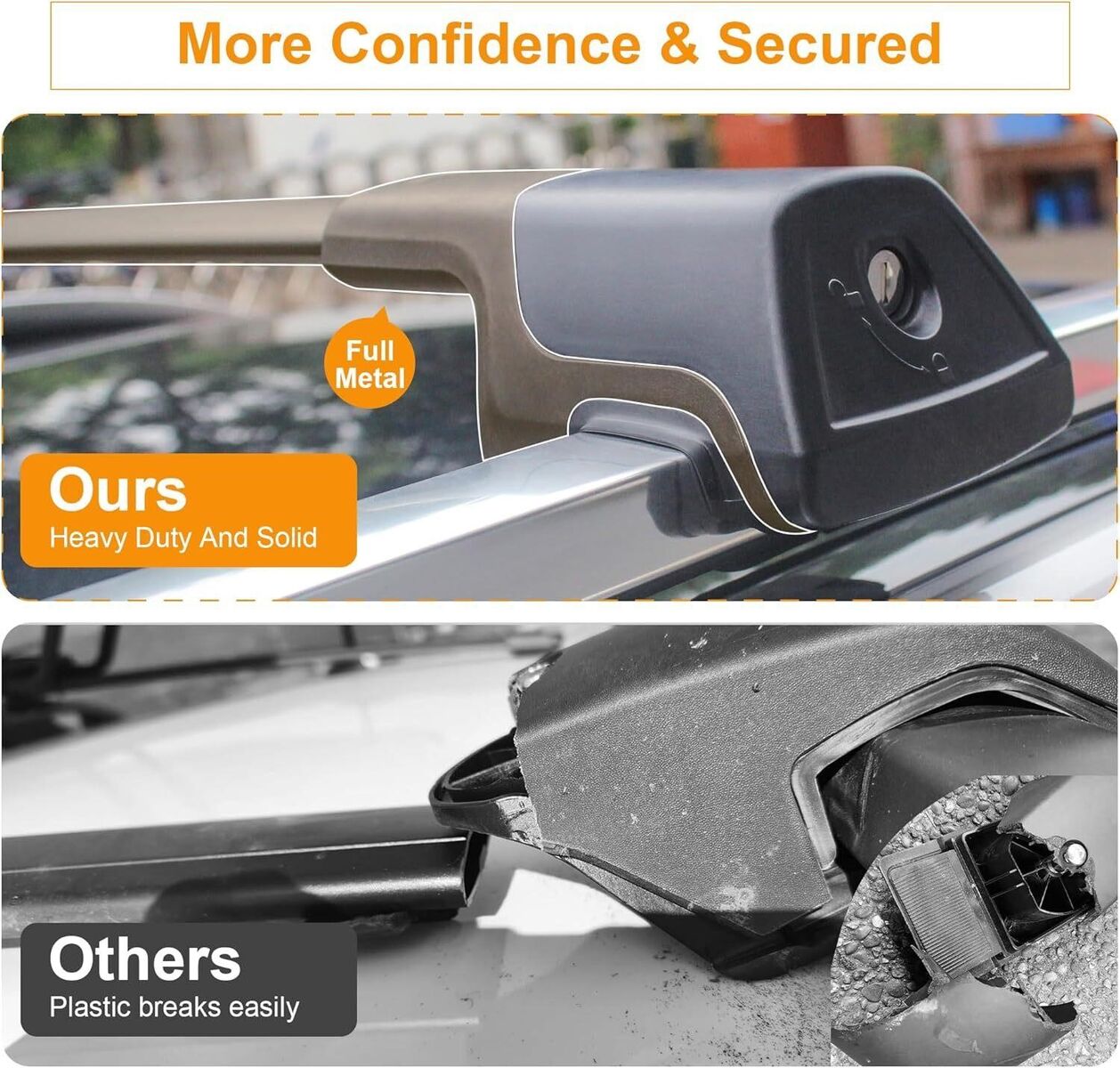 PROTECT YOUR RIDE With built-in soft rubber pad, no scratches to your car roof rail. IMPORTANT: ONLY for Forester 2014-2024/ Crosstrek 2013-2017/Impreza 2012-2021 (Equipped Factory Flushed Side Rails) SECURE YOUR CARGO Crossbars come with a new feature that secures your gear in a safer way. Each crossbar end added extra hole for tie down your bike rack or other gears if needed. Effectively secure your cargo during your trip. STABLE PERFORMANCE Die-cast metal + aluminum structure, fit perfectly and no vibration during usage. Max Loading up to 260 lb BREEZE INSTALLATION This Roof rack Crossbars No need to drilling/modification of your car roof, Just mount them directly onto your existing roof rails as per instruction marked, normally takes 10-15 minutes to get the whole Installation done LOW WIND RESISTANCE & NOISE & ANTI-CORROSION Made of aircraft aluminum, black matte powder finishing giving no corrosion for a lifetime, dynamic design for lower wind resistance & noise during driving.