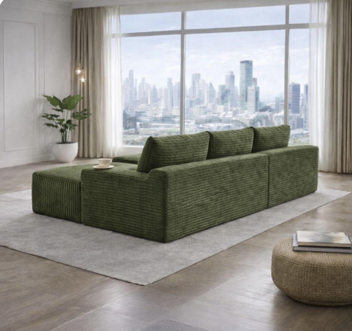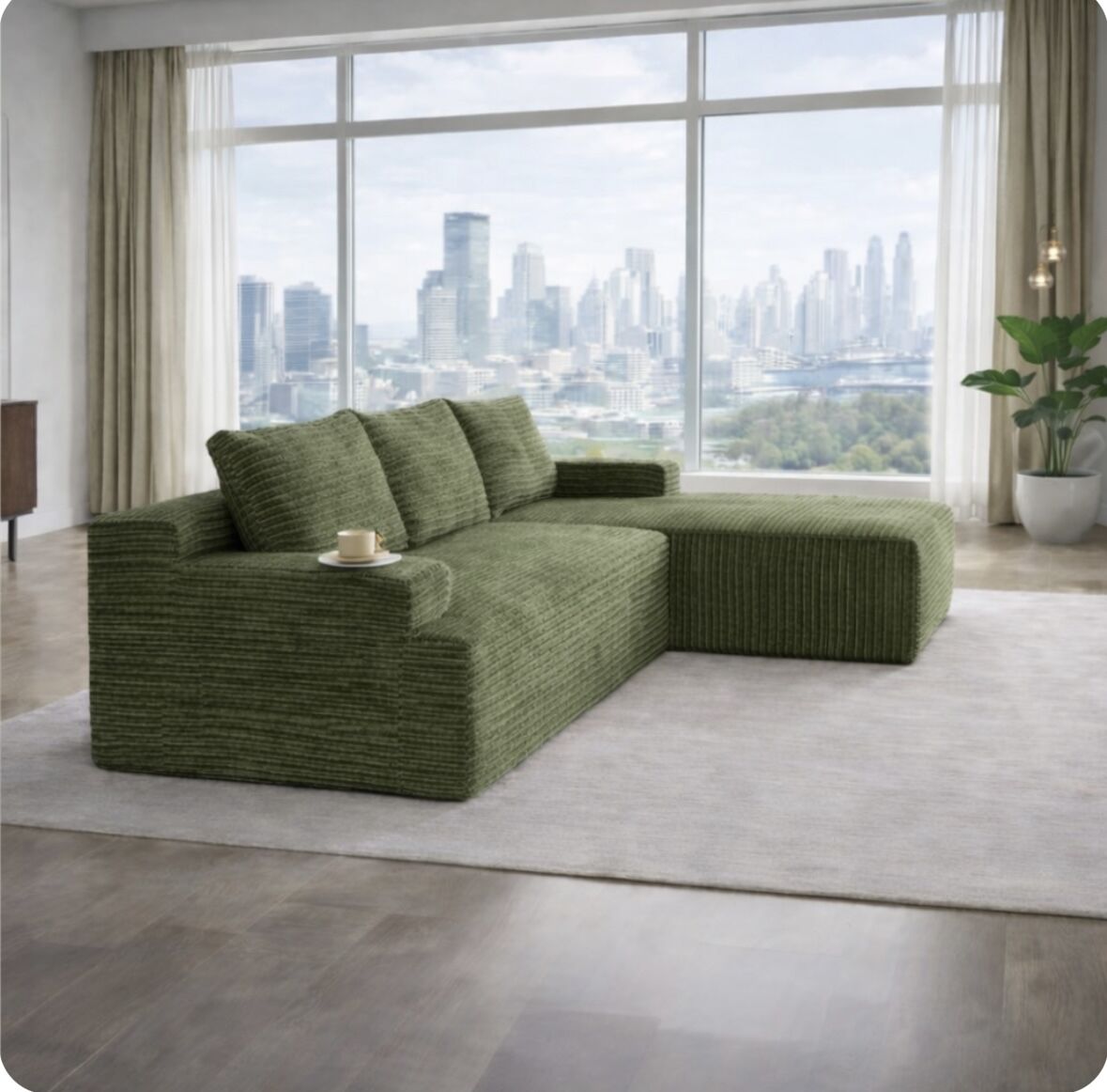 VenmoNEW 105” Moss Green sectional sofa corduroy boneless cloud