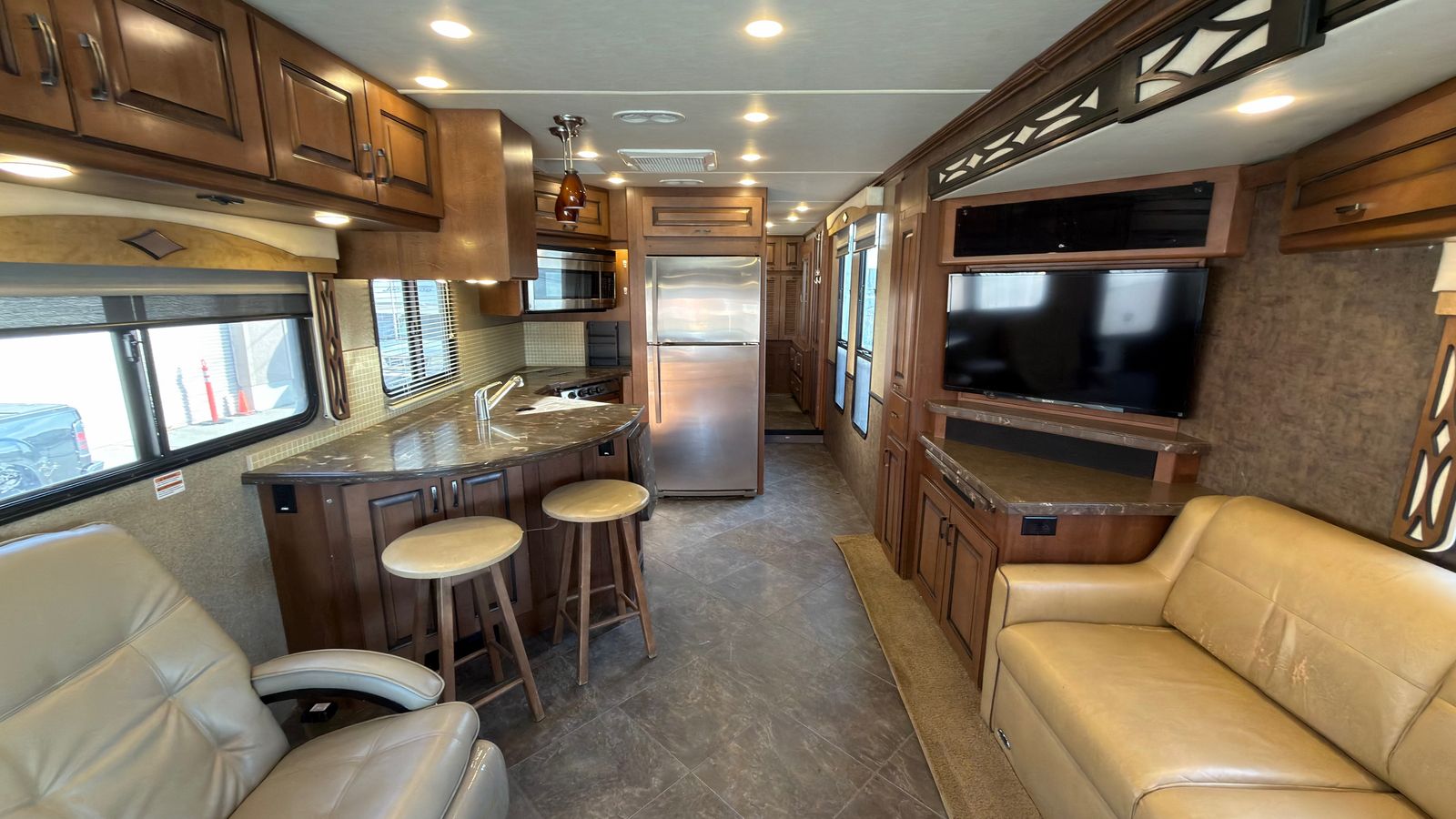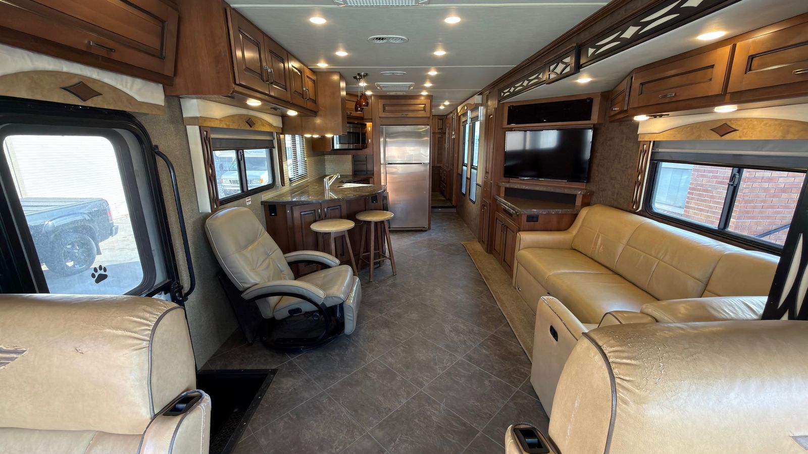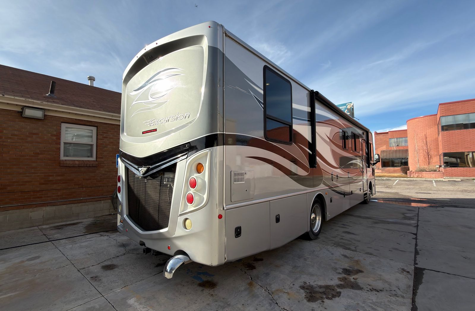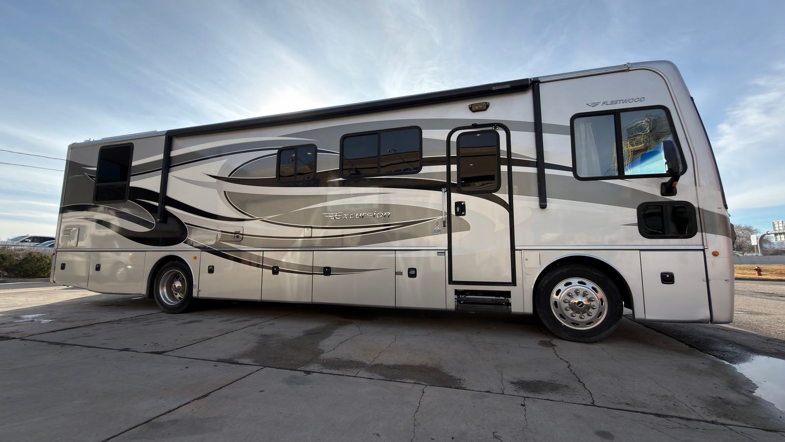 This 2014 Fleetwood Excursion 35B diesel pusher is a fantastic motorhome packed with amenities and in excellent condition inside and out. Featuring a spacious living slide-outs, it offers plenty of room to relax. Built on a sturdy Freightliner chassis and powered by a 300hp 6.7 Cummins engine with just around 61K miles, this RV is the perfect balance of size and maneuverability. At 36.9feet in length, it’s large enough for comfort yet compact enough to fit into sites that bigger rigs can’t access. Key features include a powerful Onan 5500kW generator, a large auto patio awning, generous basement storage, two ducted A/C units, and a ducted furnace. Plus, it’s free of pet and smoke odors! Don’t miss out—contact us today to schedule a tour.
