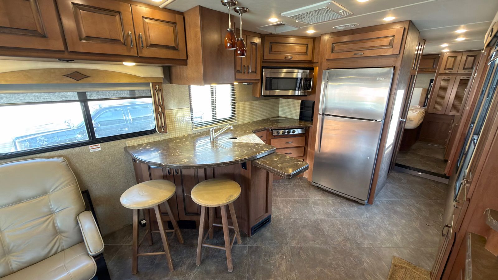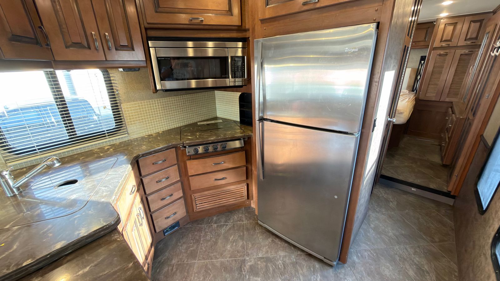 RV queen in rear