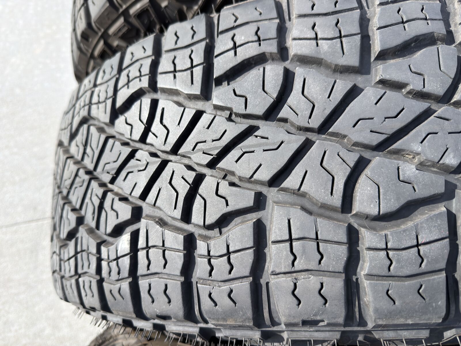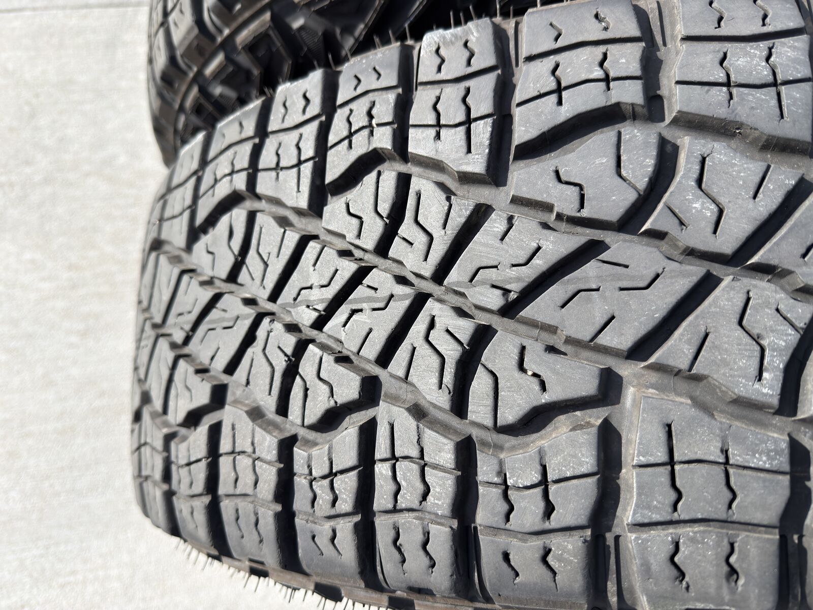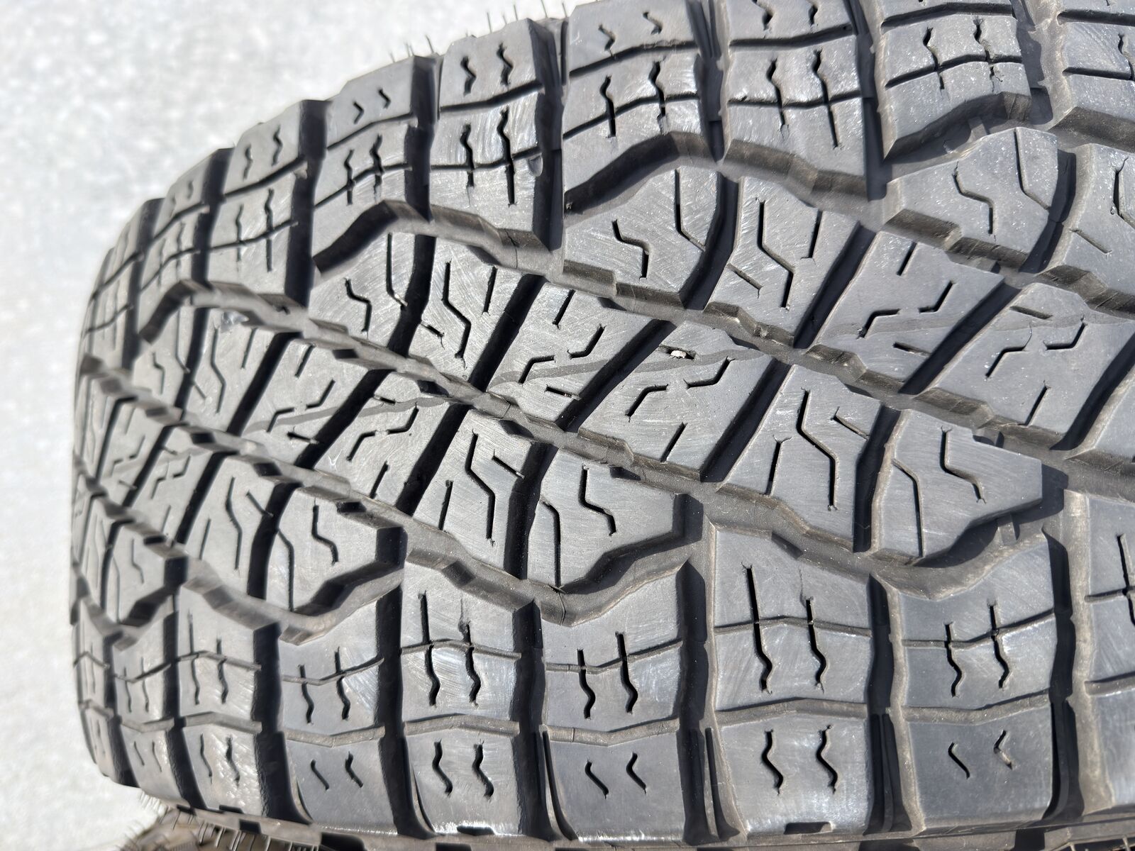 VenmoTires are used. Have no punctures and have not experied any flat repairs. One looks like it has a little uneven wear, but couldn't capture it very well with a photo.