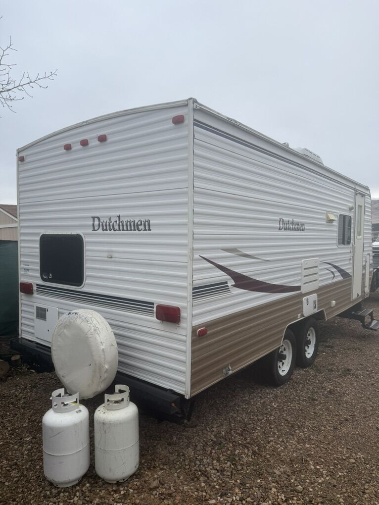 ApplePayFor sale or trade. 18ft living space 2007 Dutchmen camp trailer. It’s been a good trailer and no longer need it. Everything worked last fall when used. Has two brand new deep cycle batteries. Two 7lb propane tanks. Couch and table make into beds. Lots of storage. New skylight above shower. Due to myself stepping on it. battery boxes do not have a lid. Tires are in good shape. Entertainment Center and surround sound work. Some of the blinds are in rough shape. Batteries are not connected and are sitting inside of trailer. Unsure on dry weight seems like it should be around 4,000lbs.