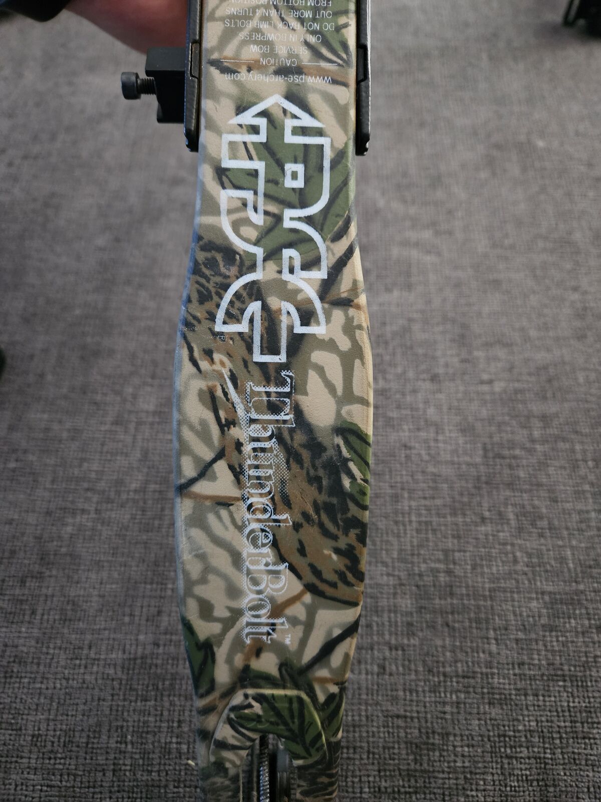 PSE Thunderbolt (well kept) right handed, with case, silencer and limb savers, extra sights, trigger release, quiver, 12 arrows, muzzy 100 grain broadheads, 3-blade mechanical broadheads, block target (like new)