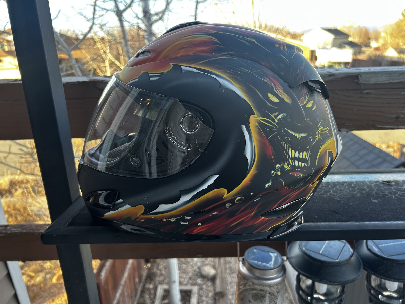 Chipped on one part of the visor but doesn’t affect anything Size M