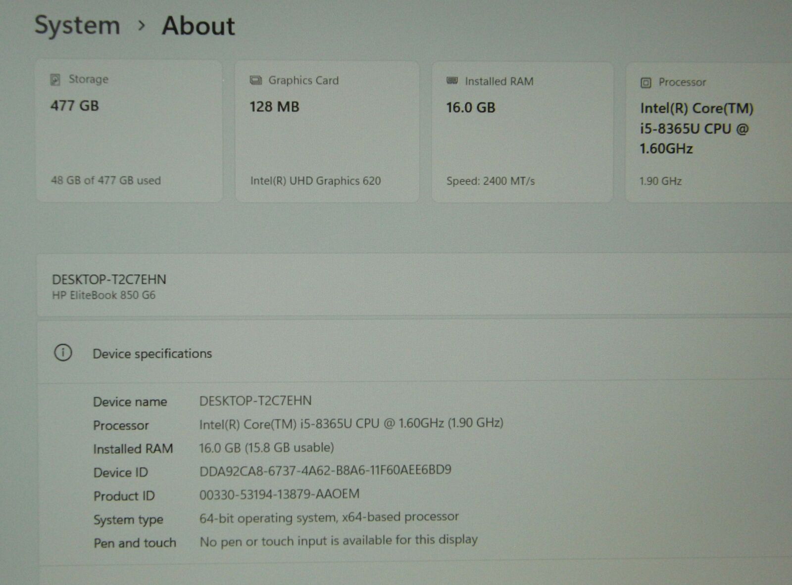 · Intel i5-8365u 1.6GHz/4.1GHz Turbo