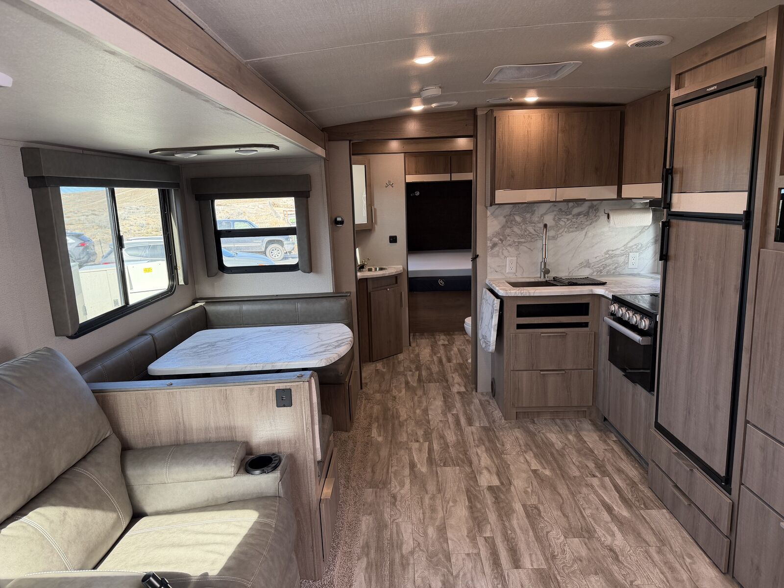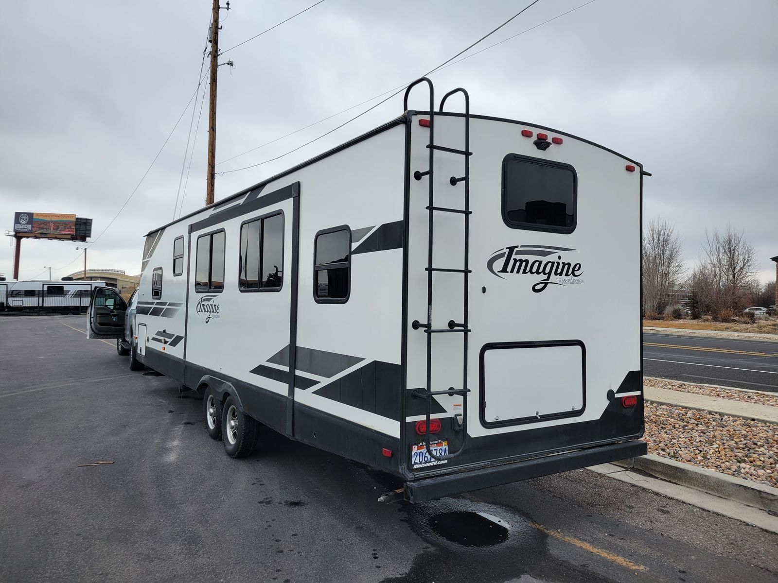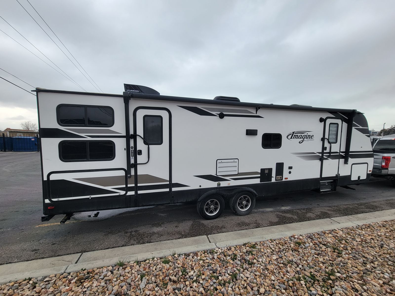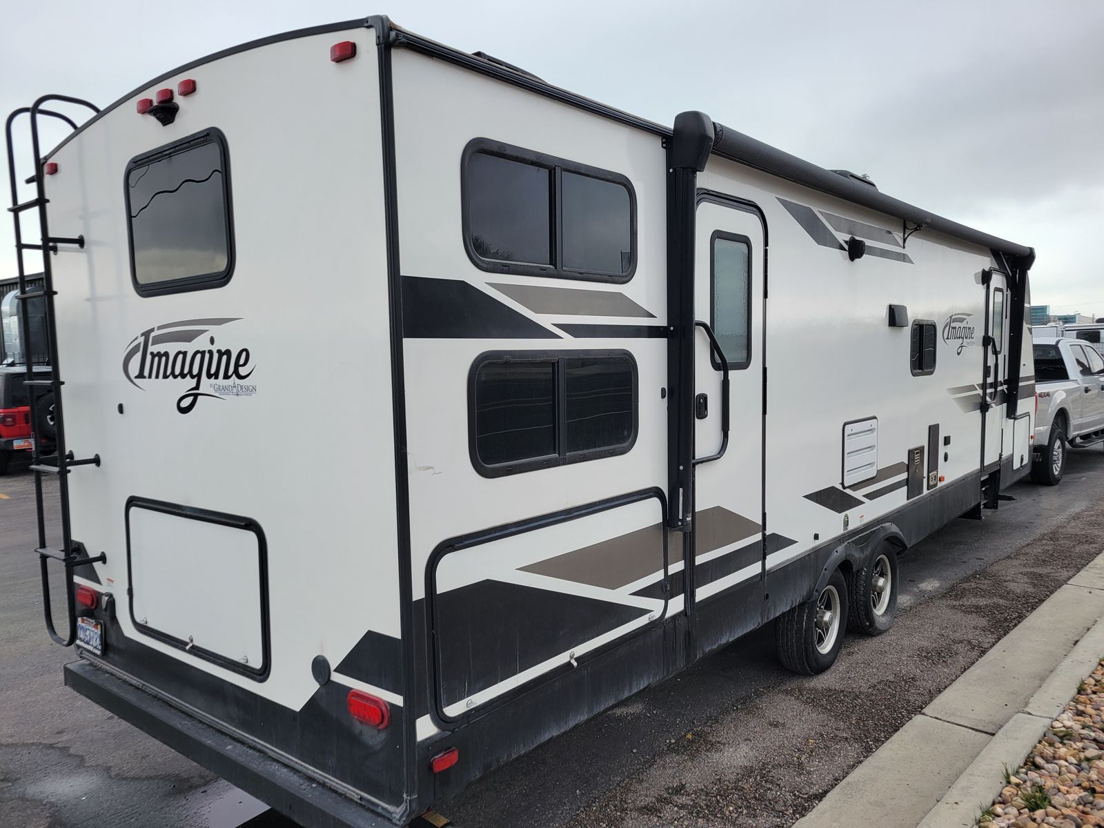 The Imagine 2910BH boasts a spacious interior layout that includes a master bedroom, bunk beds, a full kitchen, and a bathroom. The living area features comfortable seating, a large dinette, recliners, and plenty of storage space for all your camping gear. The kitchen is equipped with high-quality appliances, a large sink, and ample counter space for preparing meals.