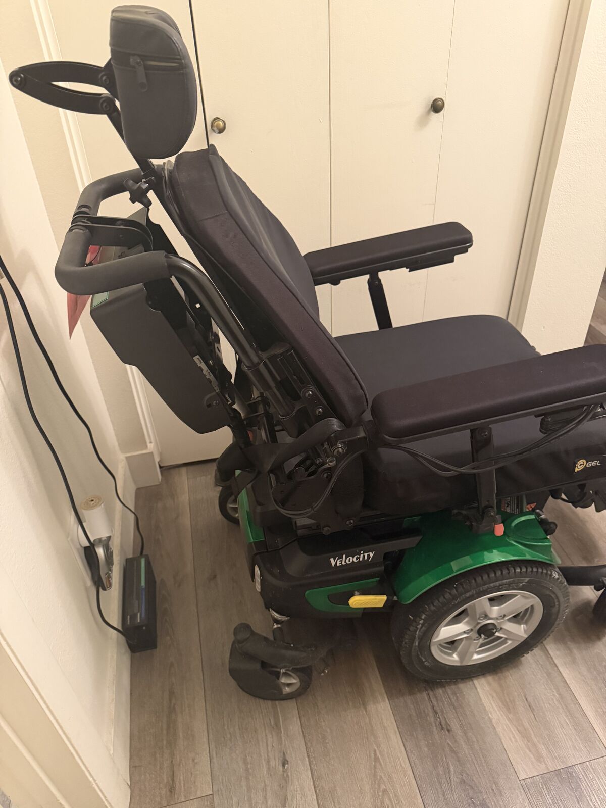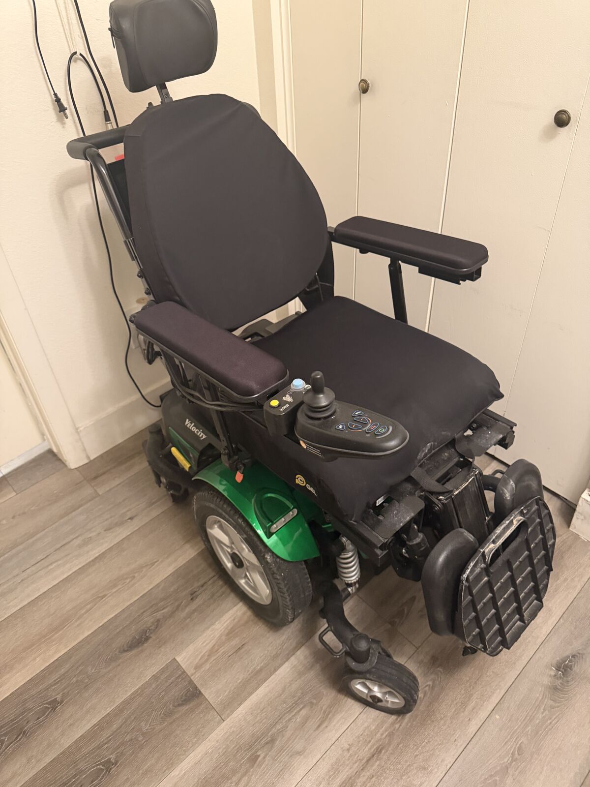 chair couple years old been really good for my mom. In really good condition. Has new wheels extra padding on the seat.