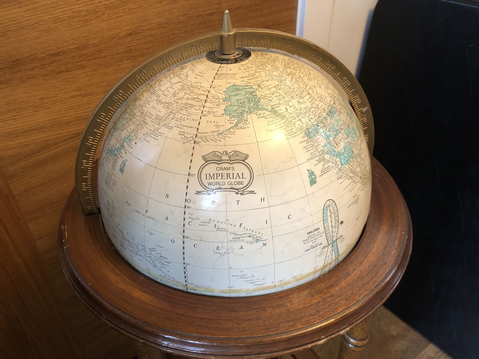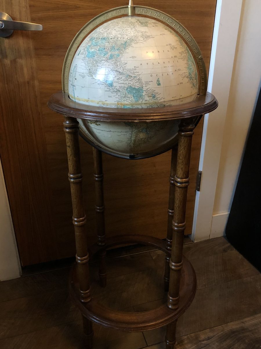 Vintage 12" Cram's Imperial Rotating World Globe on a 30 inch Powell Stand. Total Height is 36 inches with the Globe.