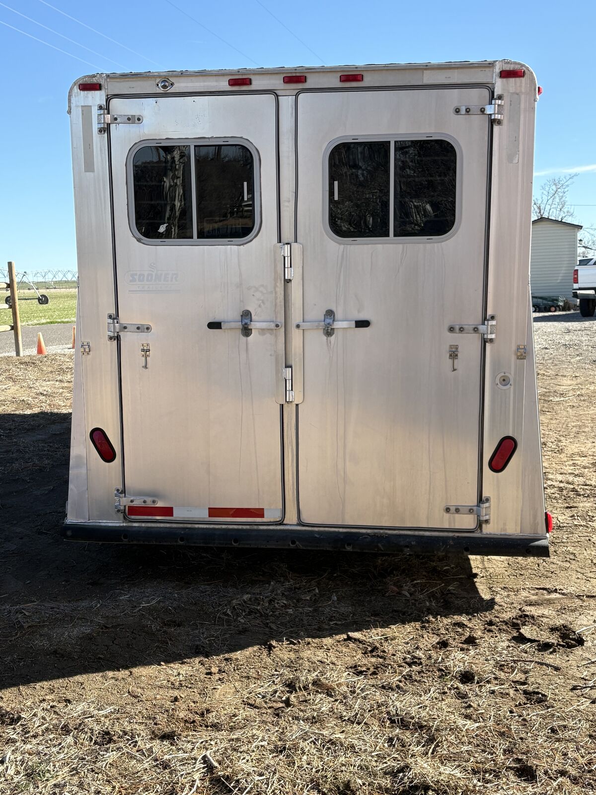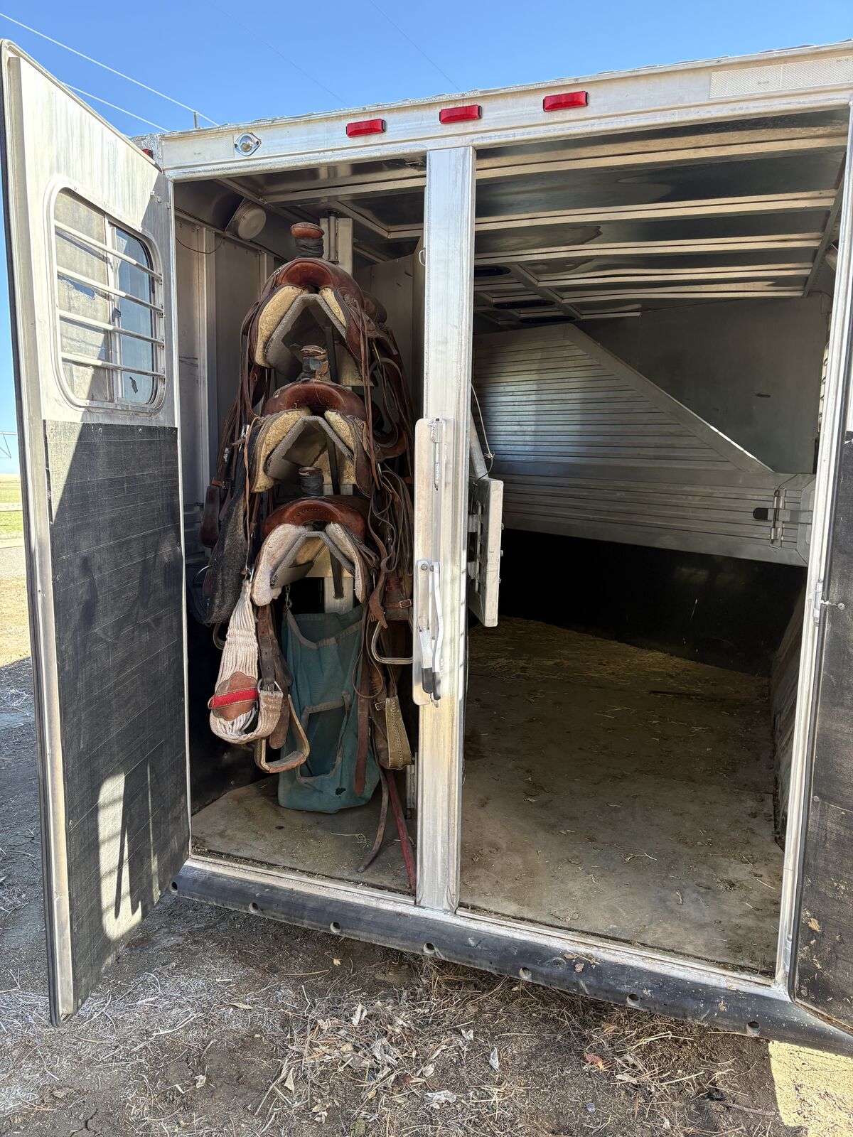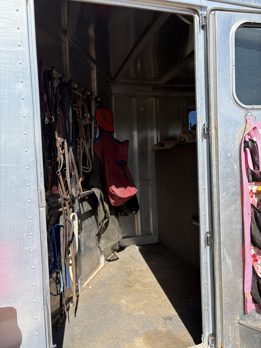 tack room in front of trailer (passenger side entry)