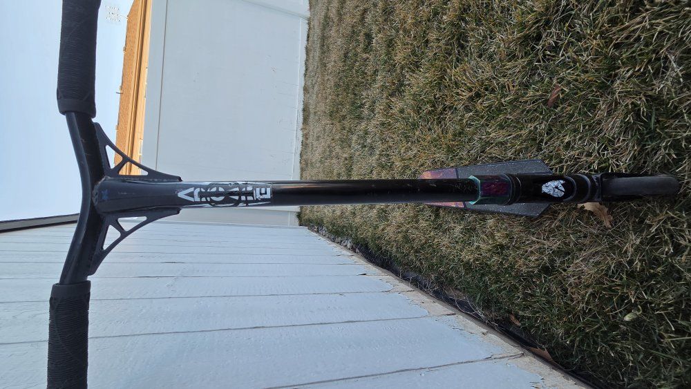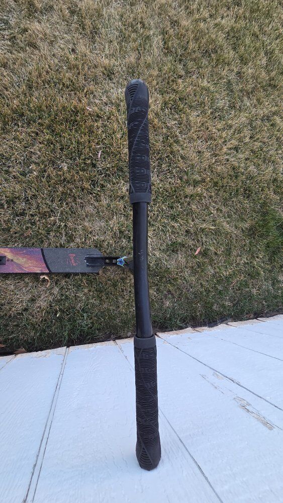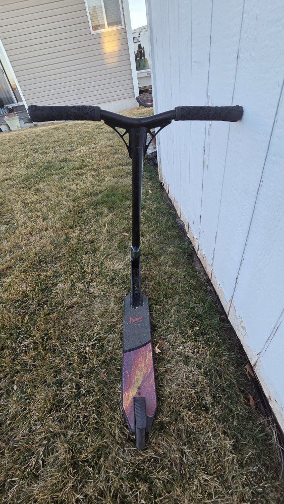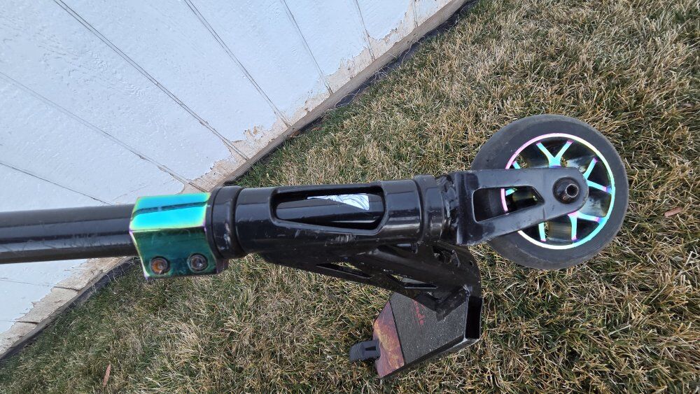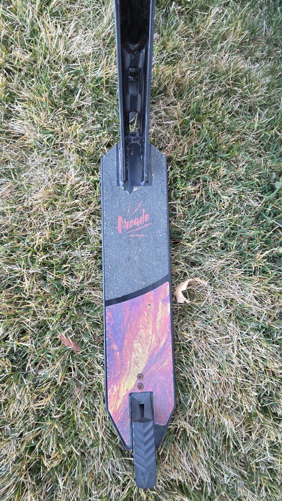 Good condition arcade scooter with oil slick wheels and clamp.