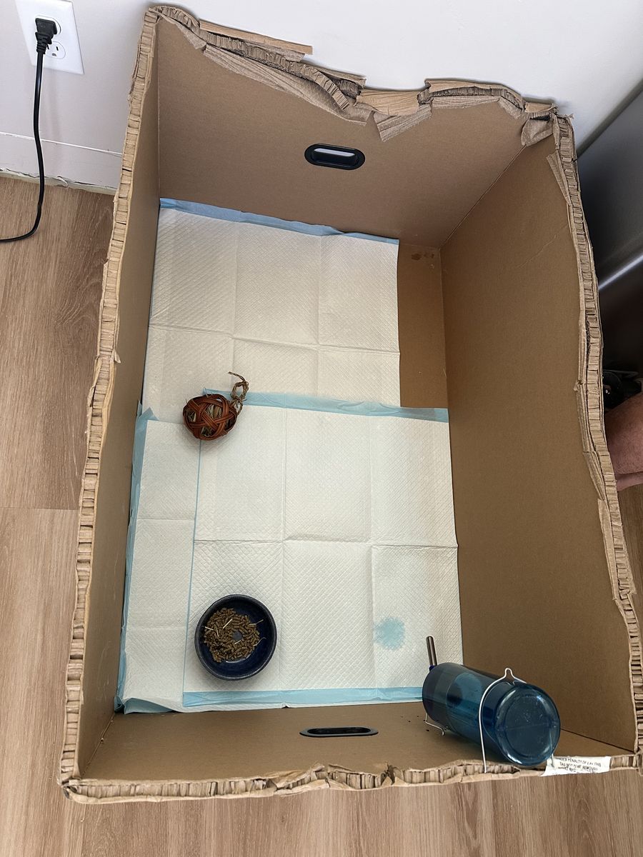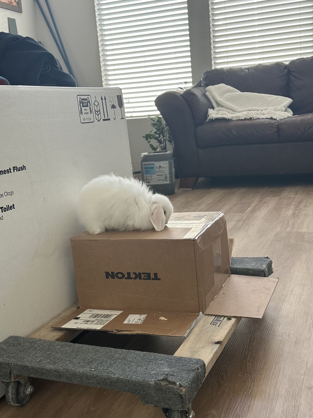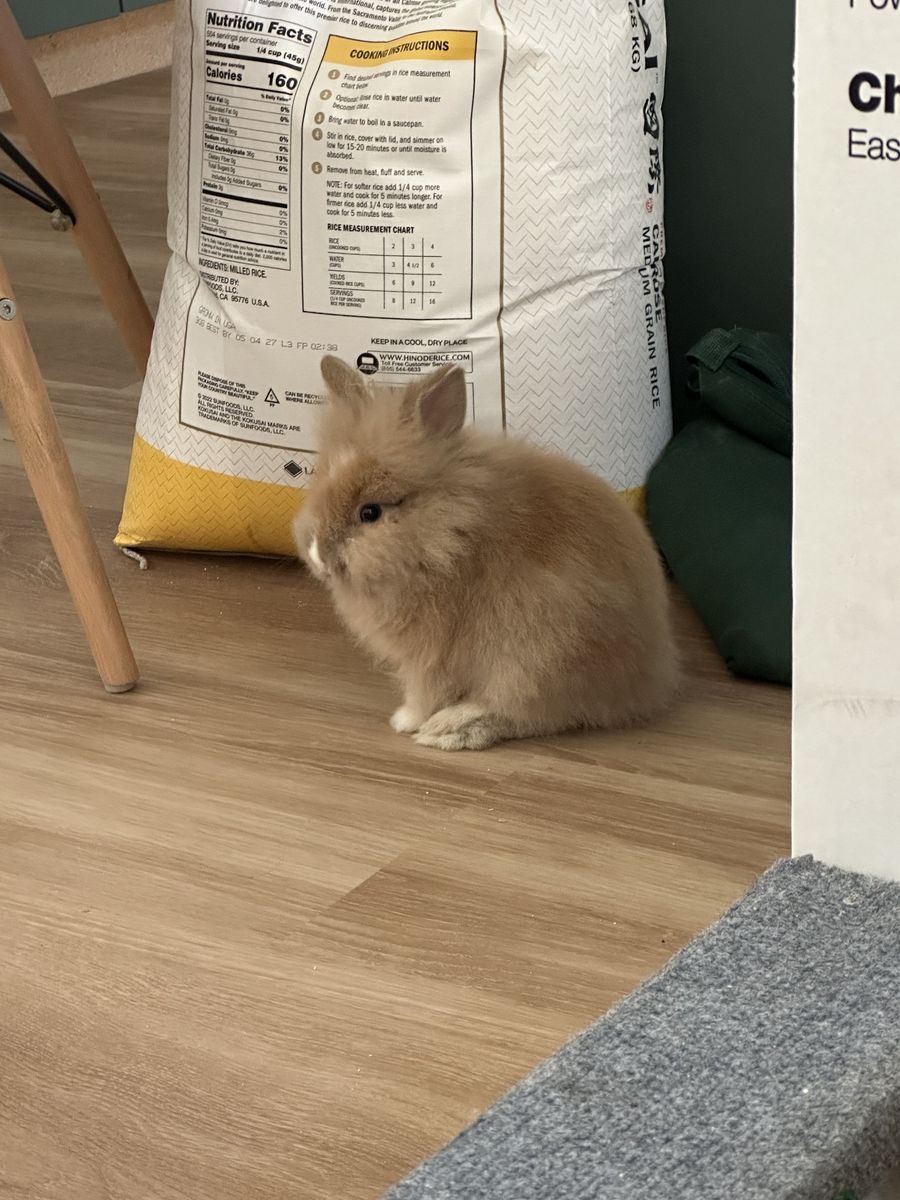I have two 6 week old bunnies for sale. My husband is allergic otherwise we would’ve keep them. They are adorable to watch hop around and are super fluffy! The brown one is more shy but is warming up, and the white one is very friendly once comfortable and will come up to you for a treat. White is a lion head lop mix and brown is lion head Rex. Selling at a higher price because we have a brand new bag of food, toy, water bottle, puppy pads, and a big temporary box.