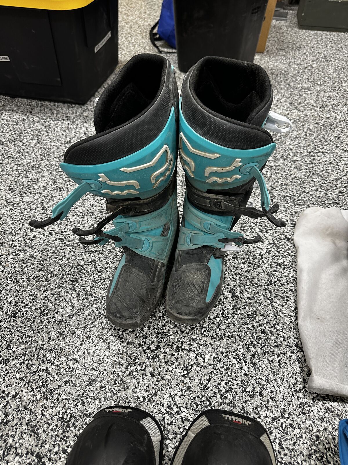 Fox Racing Comp Boots Teal - Mens 10.5 - dusty but in good shape.