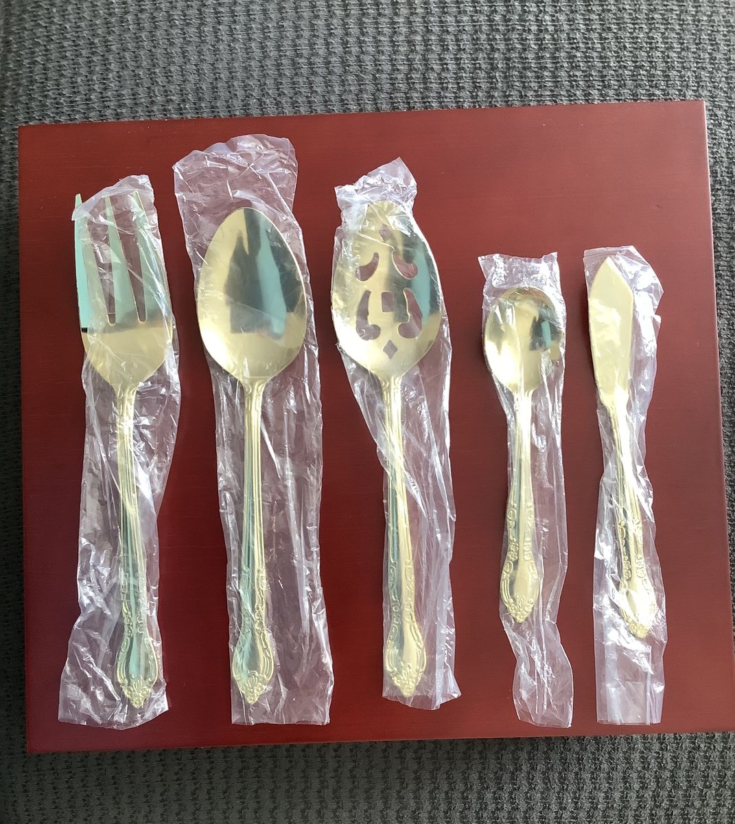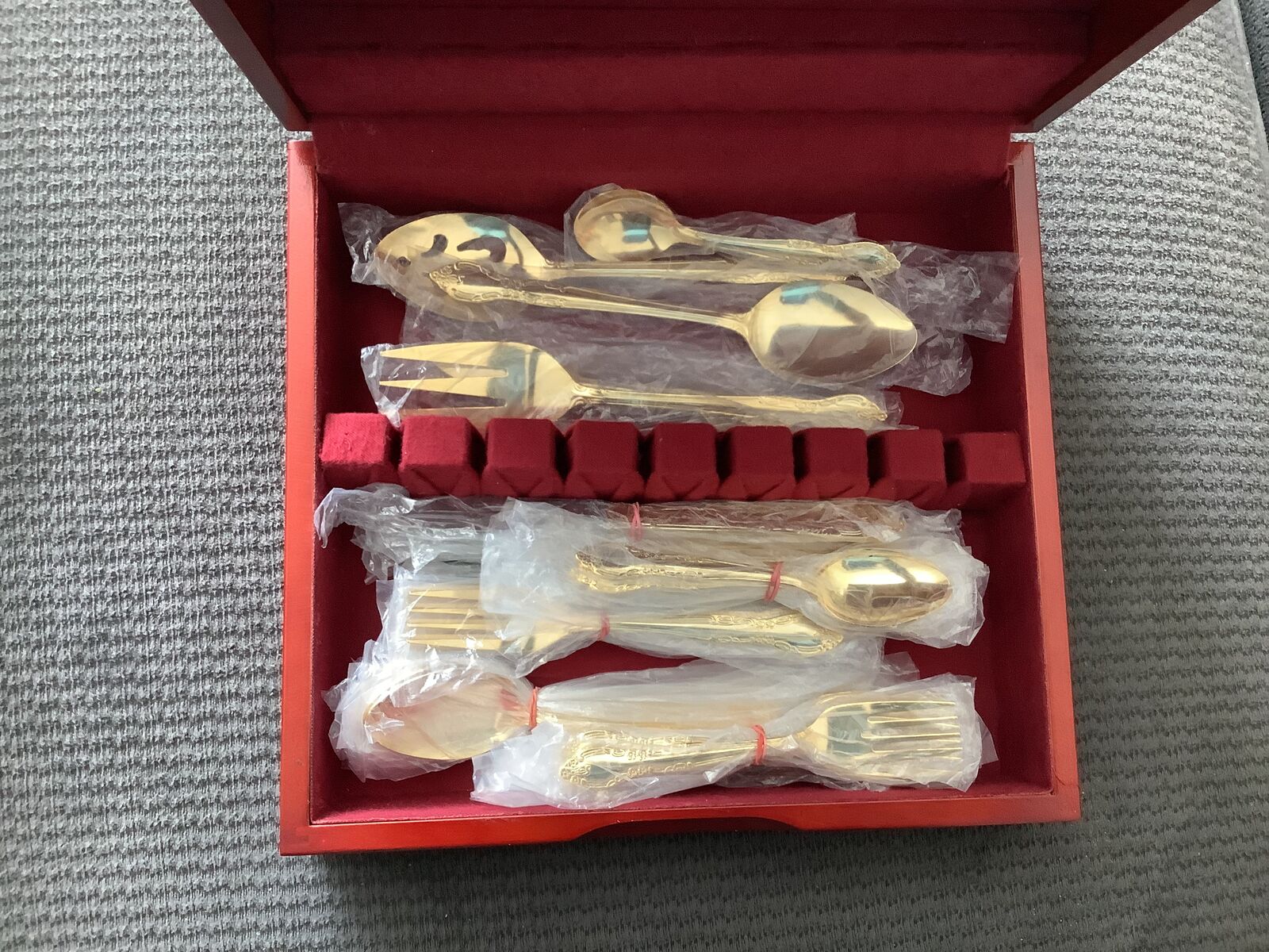 VenmoNew Goldplated Flatware with wooden storage chest Any question feel free to ask