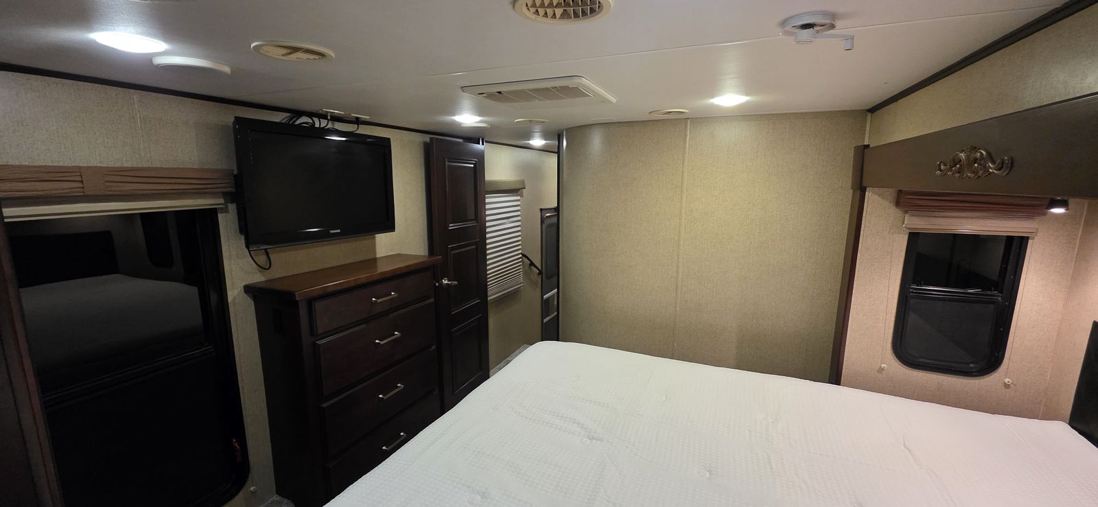 Larger refrigerator, new tires, and hydraulic leveling, which makes setup easy.
