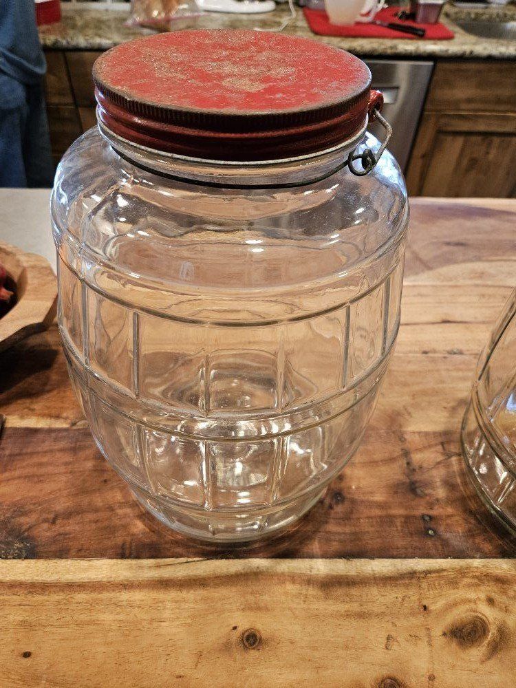 Vintage 3.5 Gallon Glass Jar with handle in great condition. it measures 13 inches tall and 8 inches across the bottom. see pictures for details.