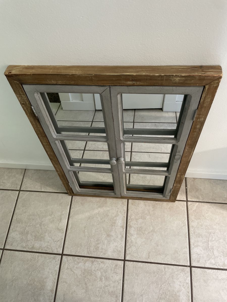 VenmoSomerset solid wood frame window pane farmhouse wall mirror. I purchased this from Wayfair for $120 and is still in great condition with very minor scratches in the wood. It’s distressed so can’t really notice. The mirror is real with no scratches and in excellent like new condition. Has brackets on back to hang.