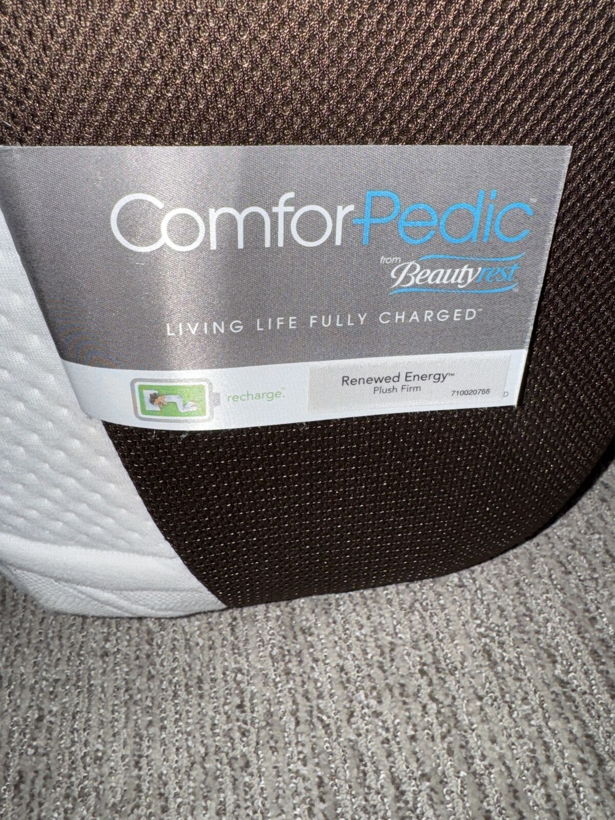 Mattress is medium-firm style from ComforPedic. it has only been used with a waterproof mattress protector and doesn't have any stains.
