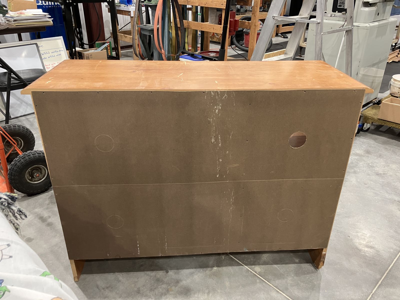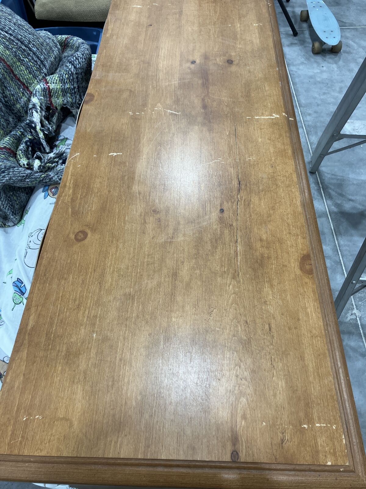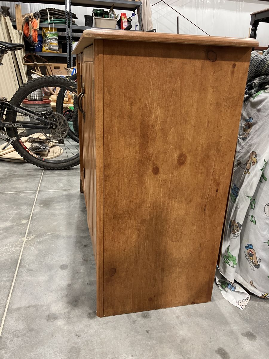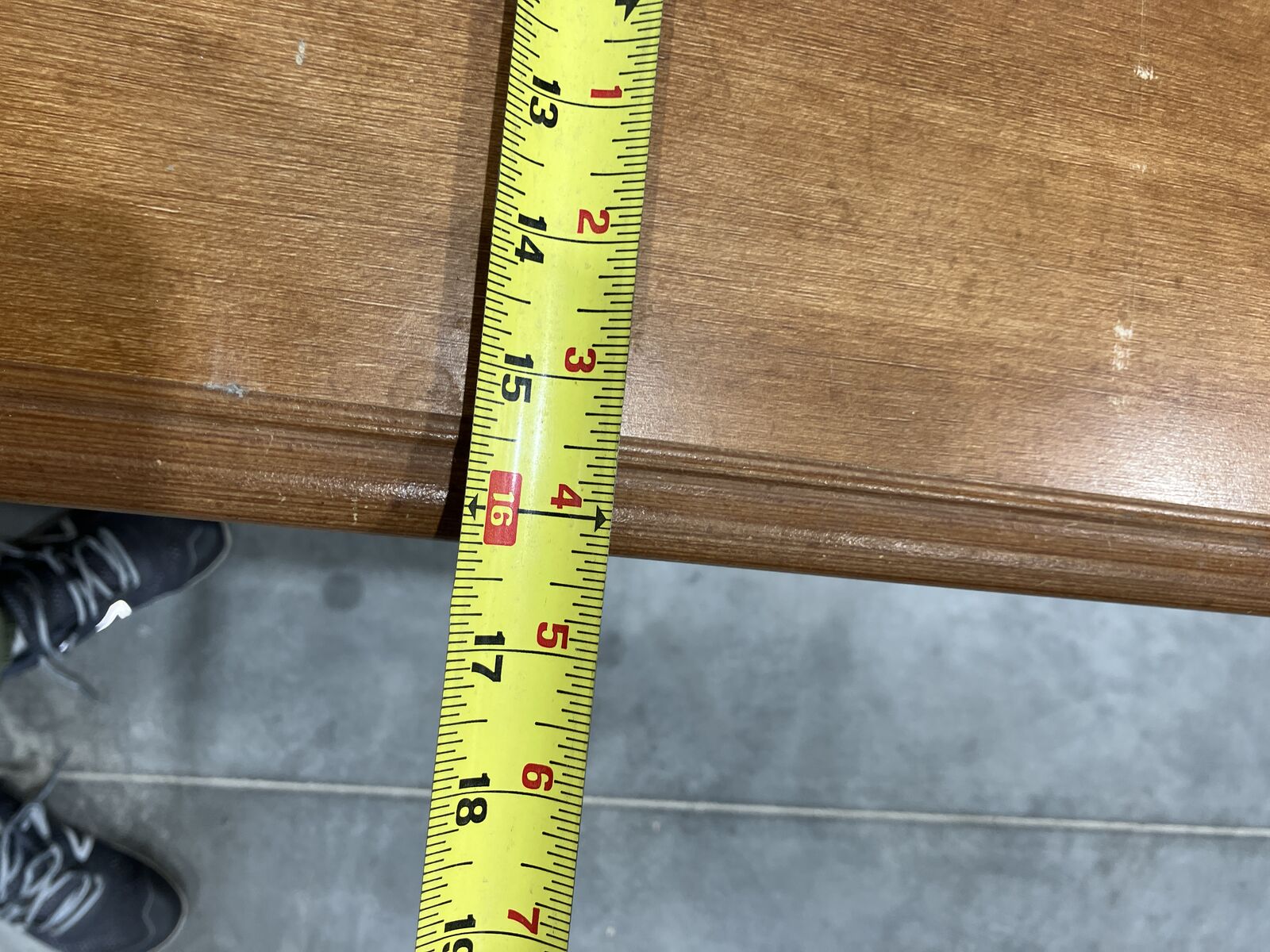 PayPal42" long, 16" deep, and 32" tall with open and enclosed shelves. In good working condition with scratches on top.