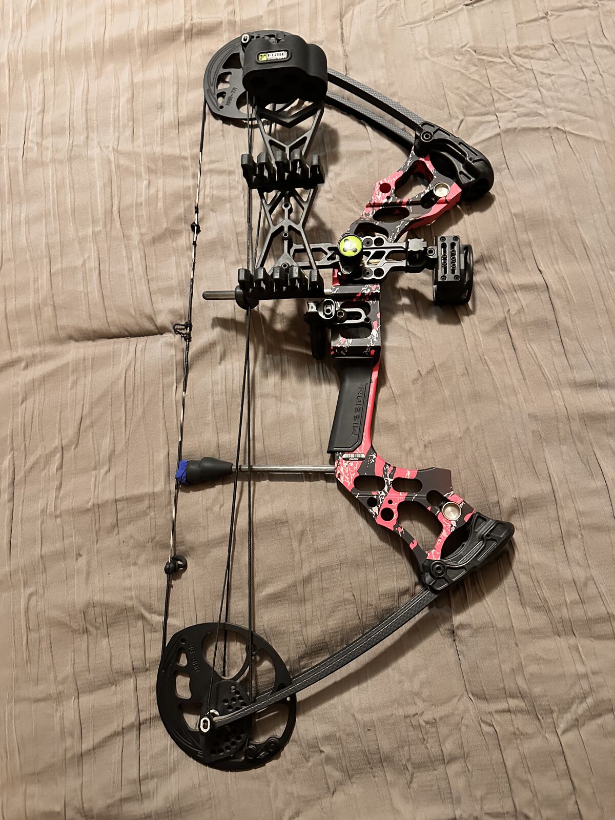 $500 OBO. Mission youth compound bow. Comes with quiver, sight, whisker biscuit, and has a draw weight of around 45 Lbs. I have upgraded to a bigger bow and no longer need it.