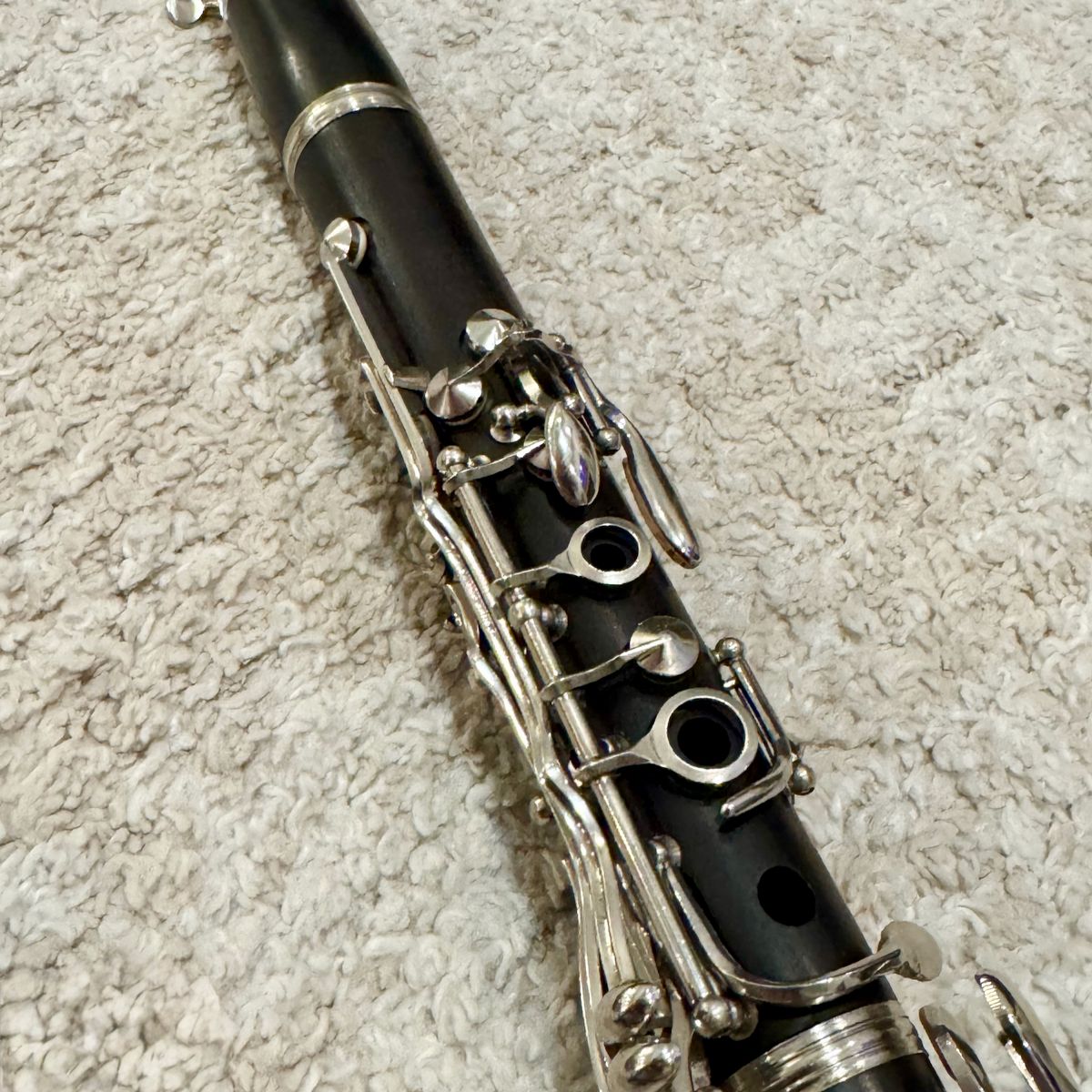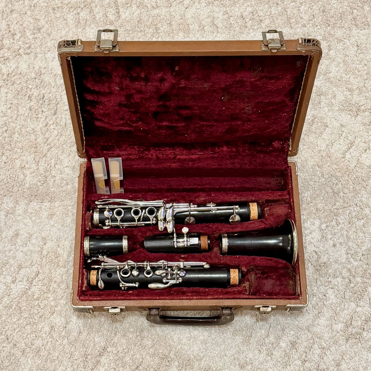 Solid wood body with silver-plated keys in clean vintage condition with normal signs of age. Includes the case, a Vandoren B45 mouthpiece, and two 3.0 reeds so it’s ready to play.
