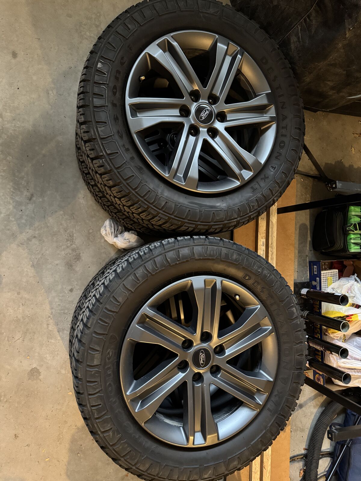 OBO shoot me an offer These are OEM rims off of a 2023 ford f150 lariat It is a 20 inch rim on 33 inch tires This listing includes BOTH the rims and tires Comes with lugs There are some very minor scratches on the rims