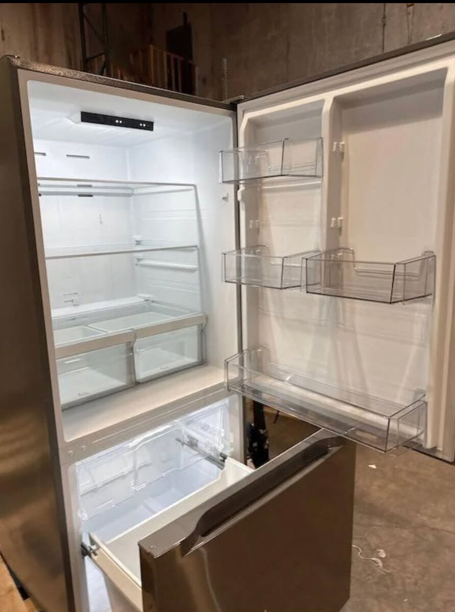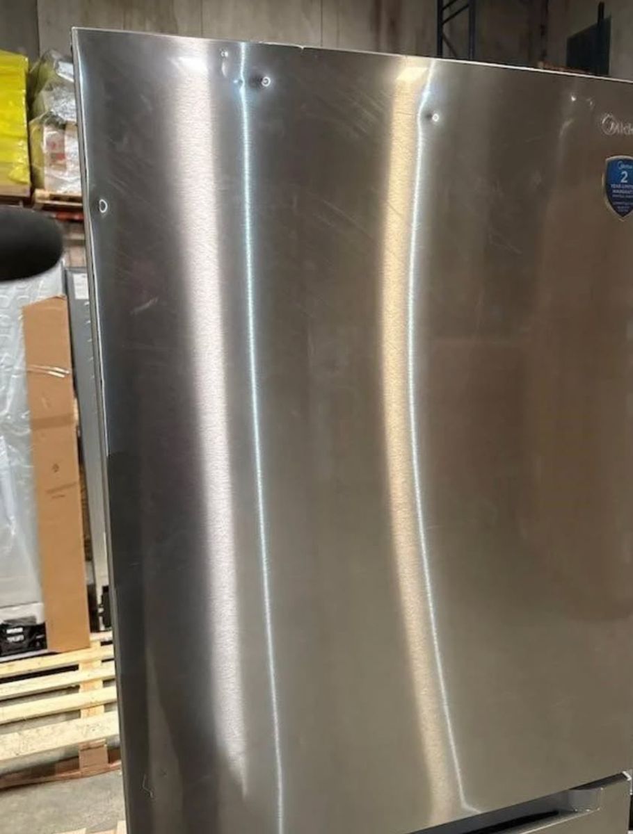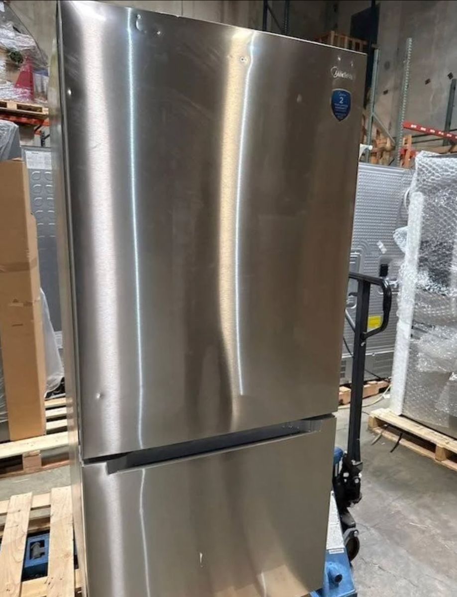 Midea Garage Ready Bottom Mount Freezer Refrigerator, Garage Ready from 38 F - 110 F. Reversible Door Swing. LED Interior Lighting. Frost-Free. Energy Star Certified tiny dings and a little scratches which is why its been discounted from retail price