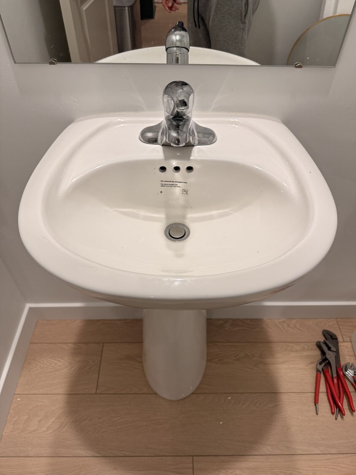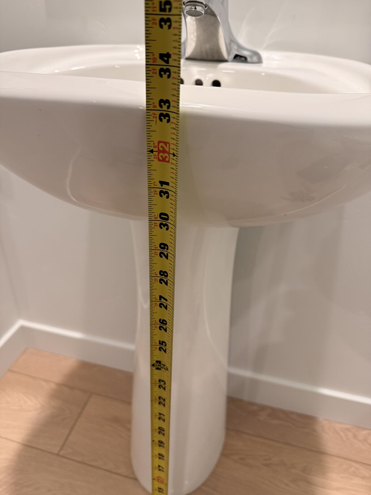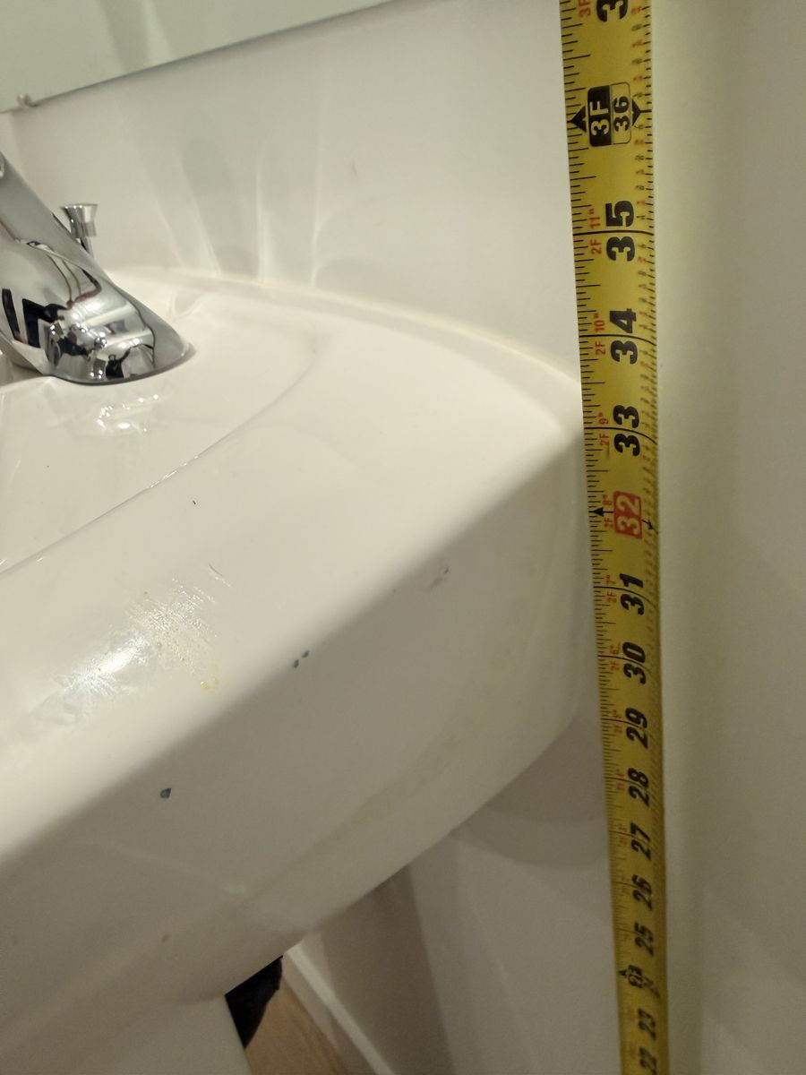 Sink comes with faucet, drain piece, water lines seen in photo and metal bracket.