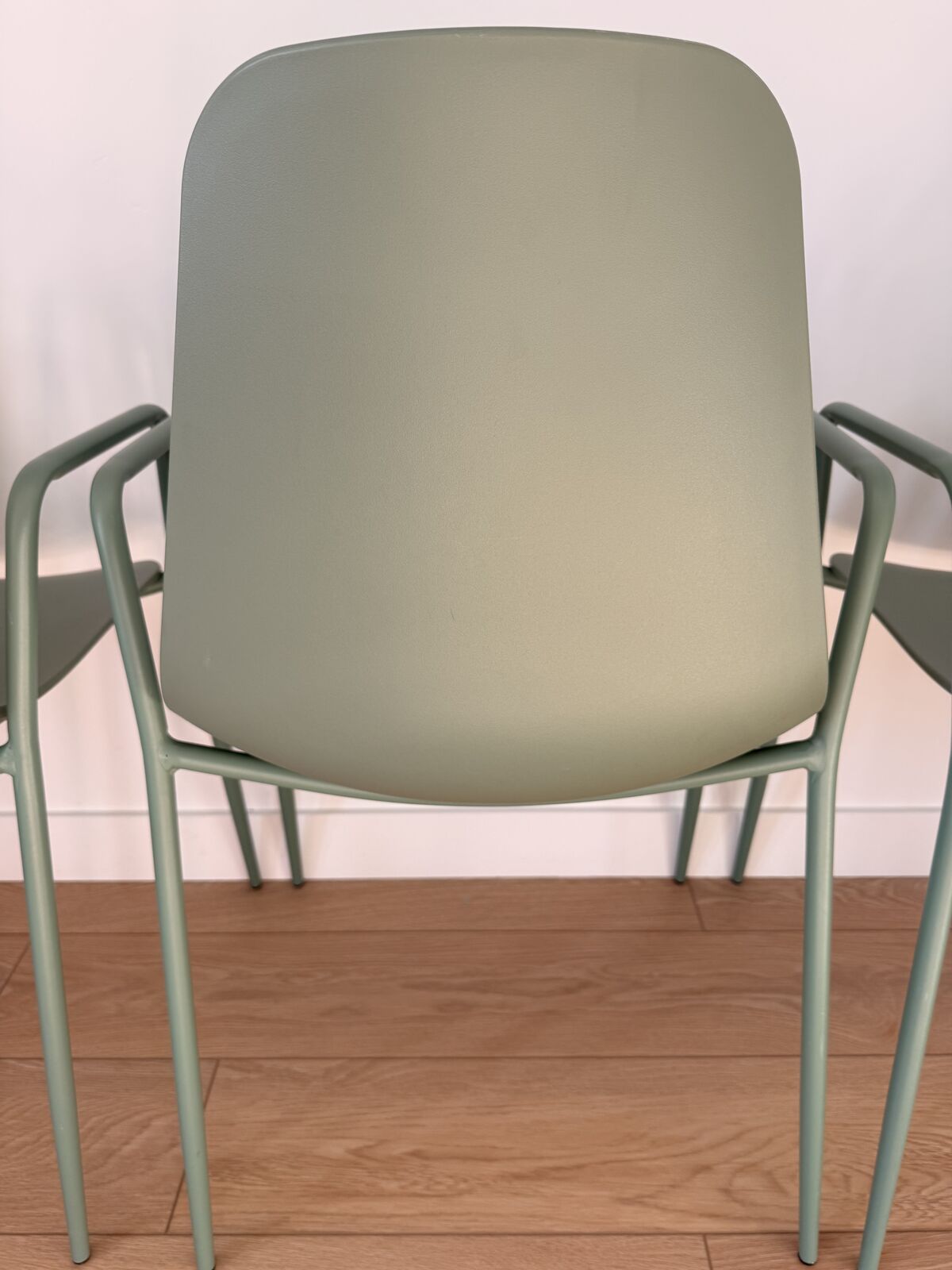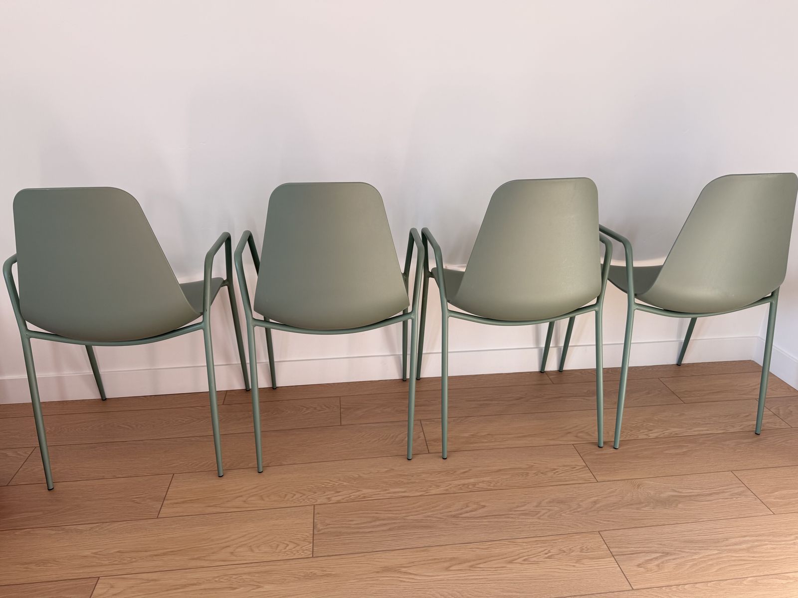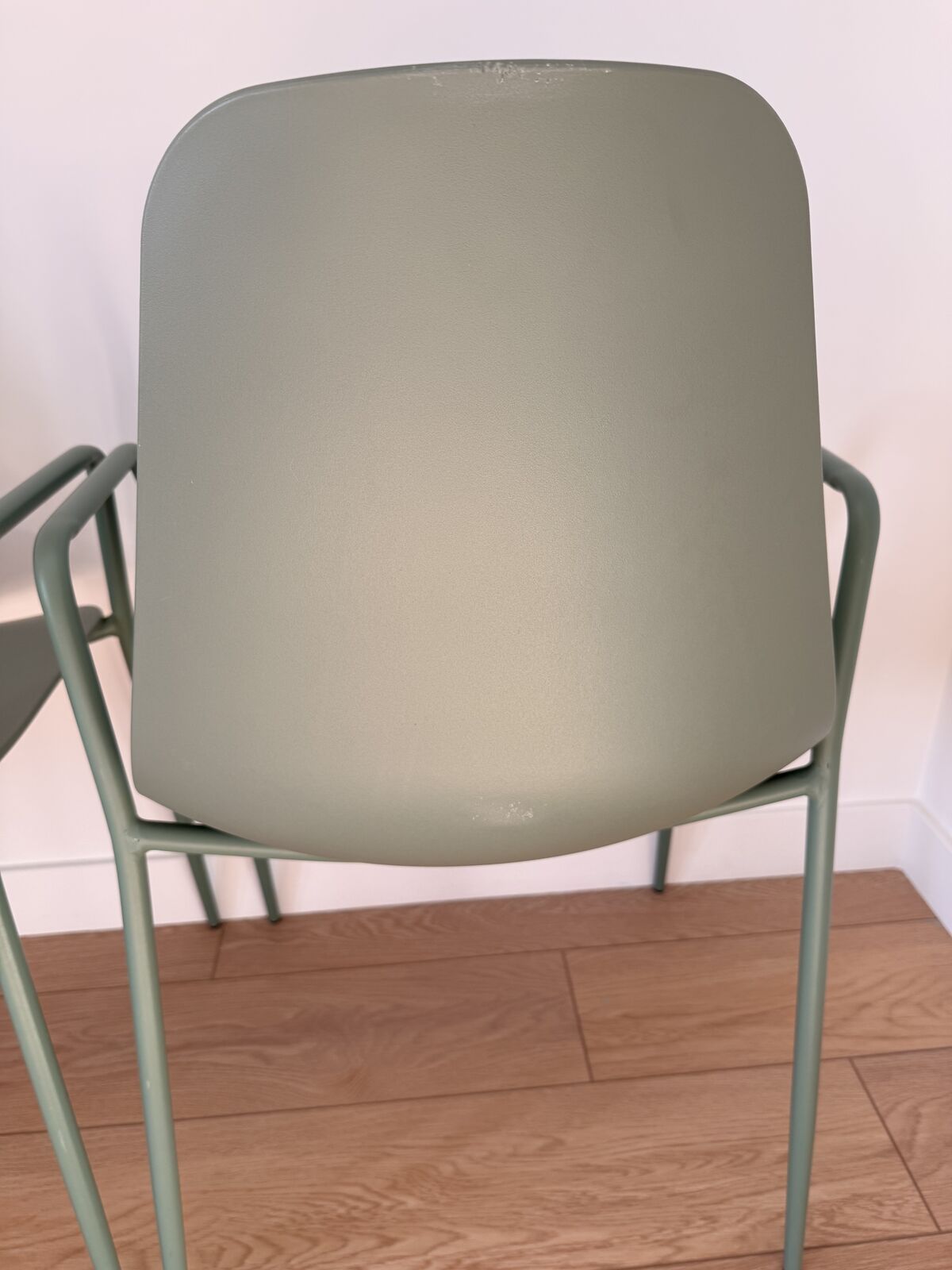 ApplePayGood condition, some have a few minor scuffs on the legs from being stacked during a move. And one has a minor scuff on the back. You can see all in the photos. Overall very comfortable and good condition.