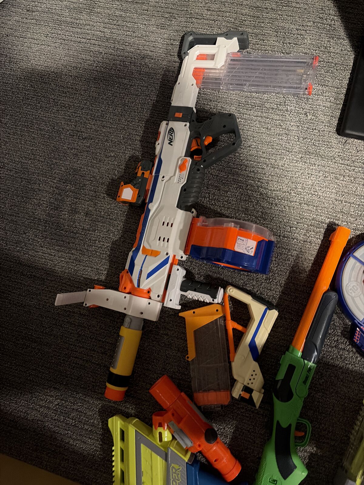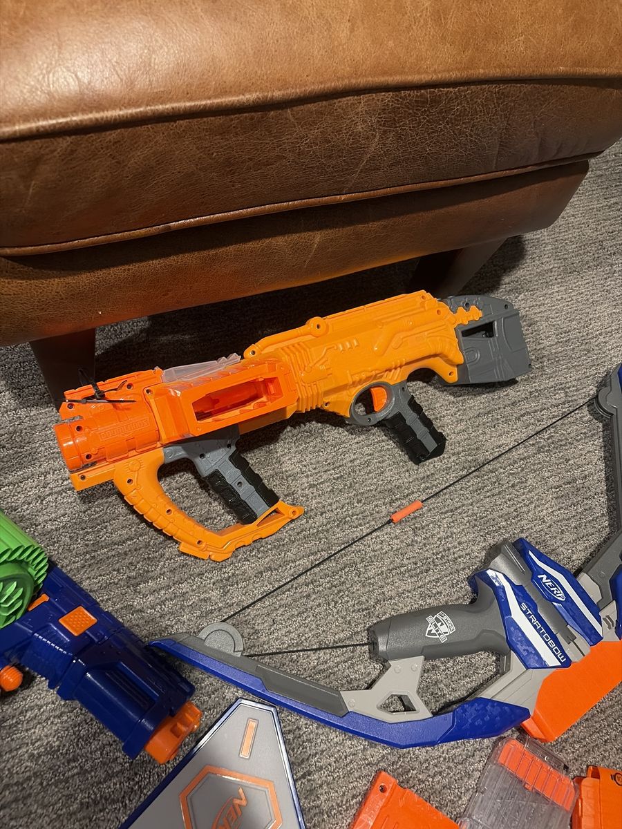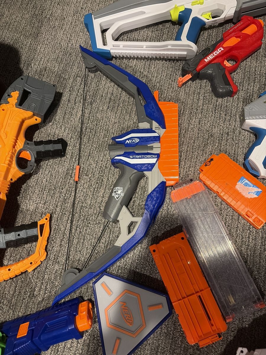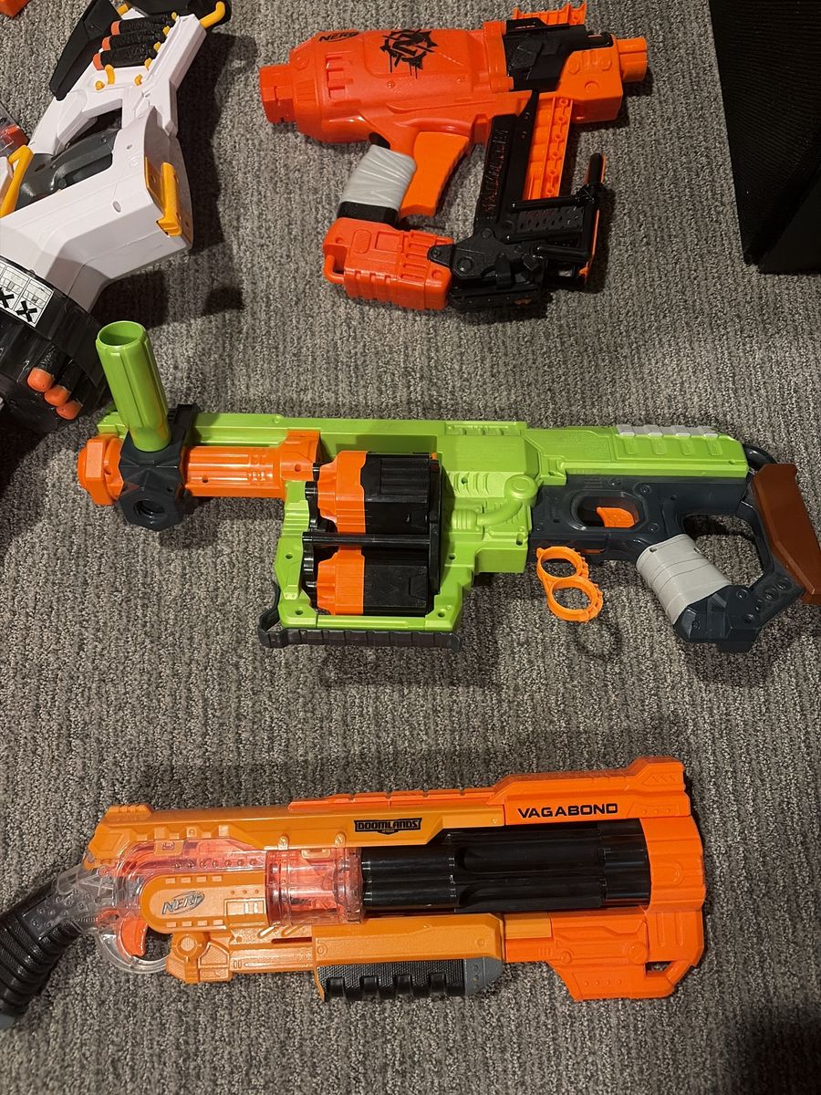 VenmoEverything in photos shoots and runs good had Them for a long time but stopped playing with them hoping to sell all at once but will sell individually if needed kinda like a pick and pull, 13 guns in total with 8 magazines with 2 sights 1 for grip on suppressor and a carry handle can sell all attachments individually I do have the amo for all of the guns with the inflatable barriers they all hold air and there are 4 of them about 3 feet tall happy to negotiate I just want these gone will meet half way