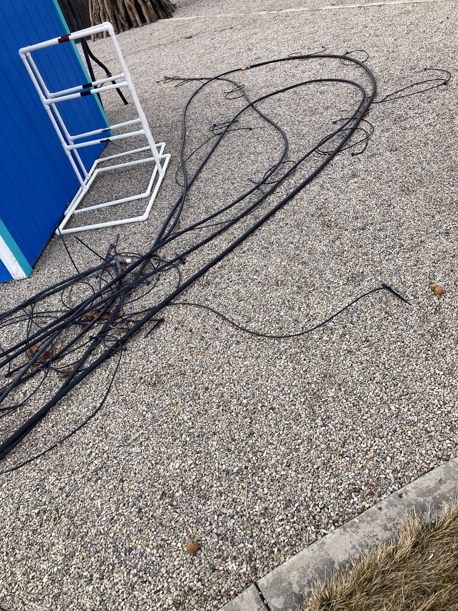 VenmoOne piece of tubing about 125’ long of which 33’ is 3/4” and the rest is 1/2”. The second piece is two pieces of 1/2” that are about 30’ long that are connected with a 90 degree coupling. Many drippers and tubing along the whole length. I used this last year in my small garden but I’m not planting it this year. Cash or Venmo only. Texting is best. Cary