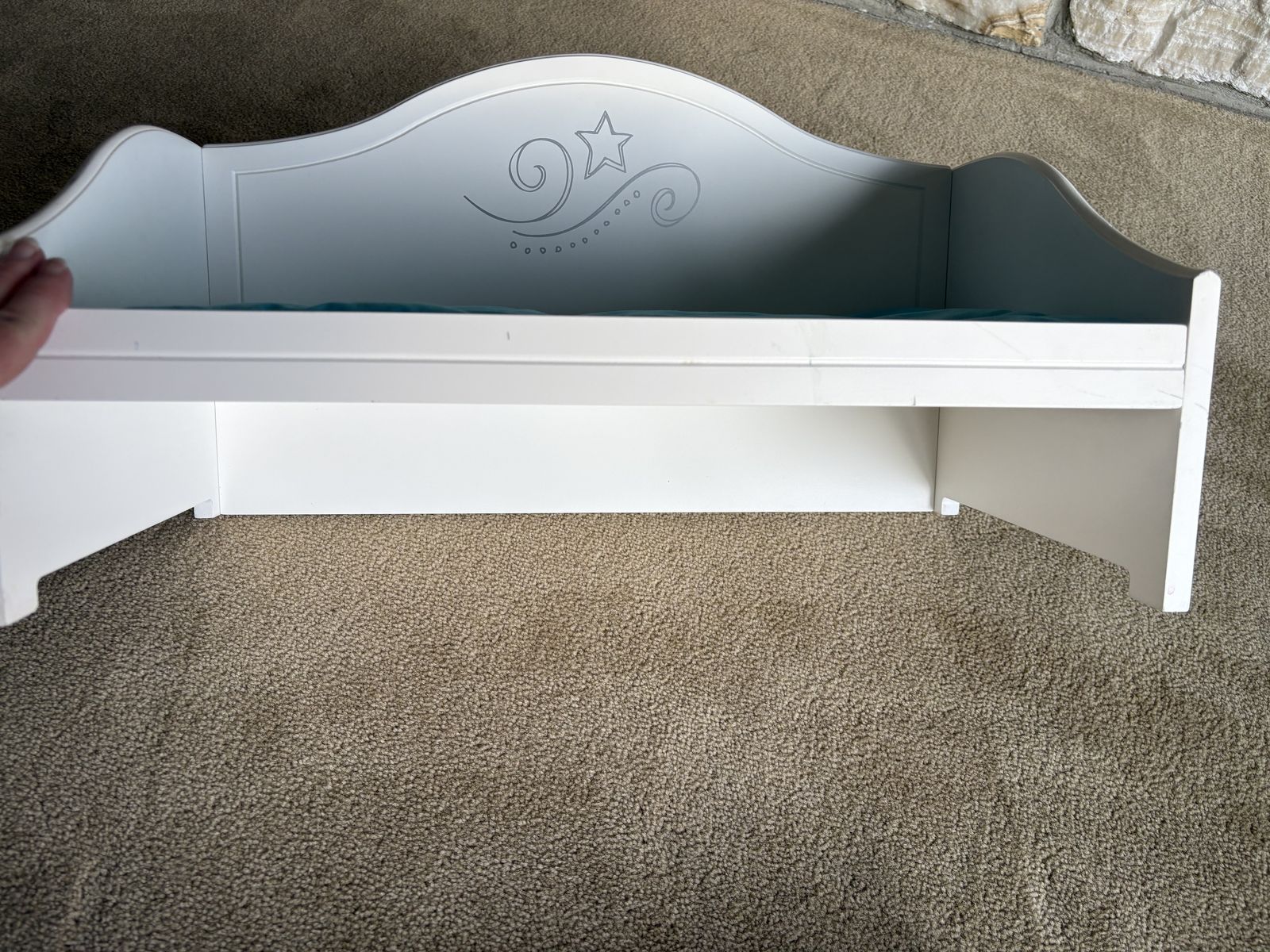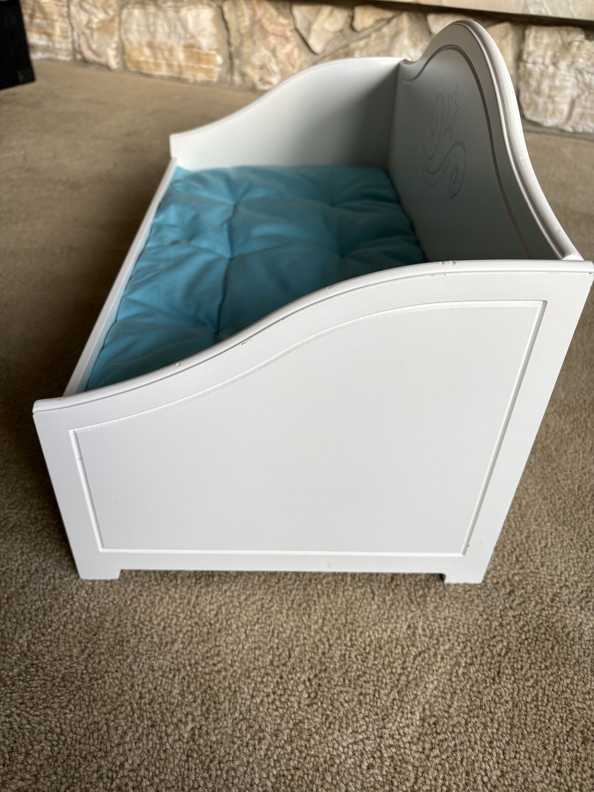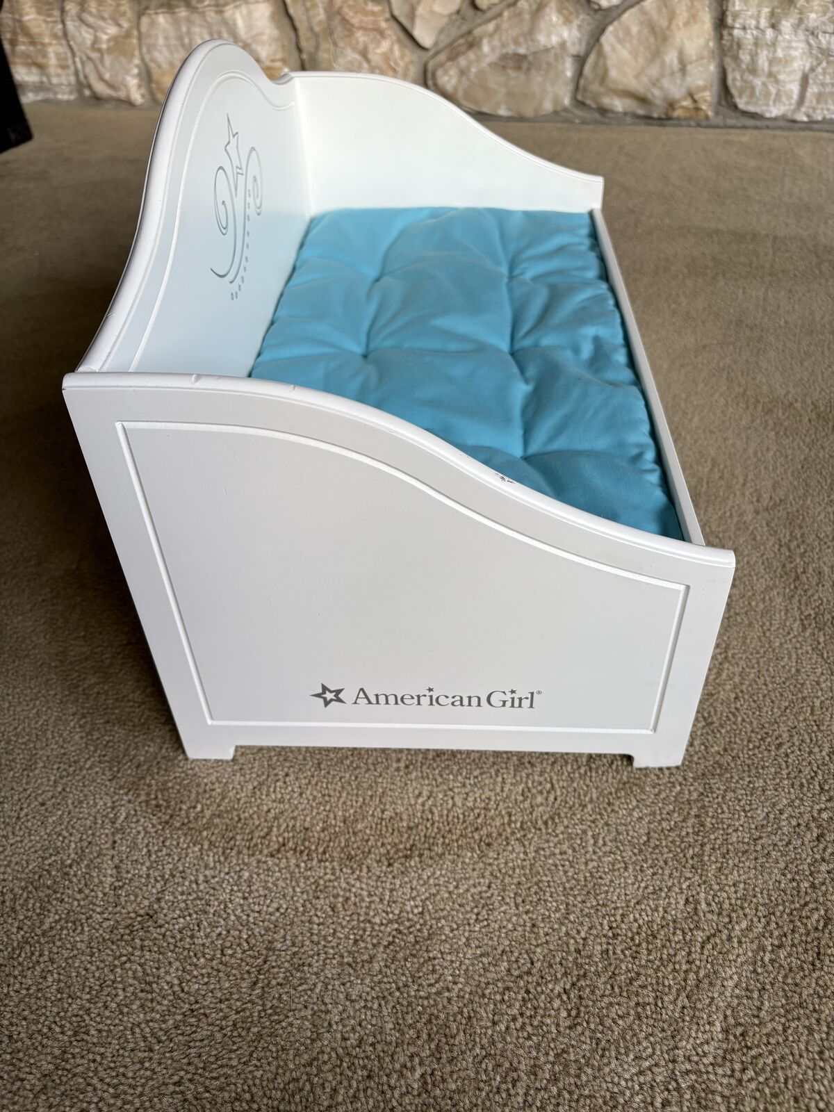 Genuine American Girl Trundle Bed, for 18” dolls. 2015. Painted wood, pull-out trundle drawer, soft mattresses. High-quality, sturdy construction, very good condition (a few small scuffs, see photos). Text only. Cash or Venmo.