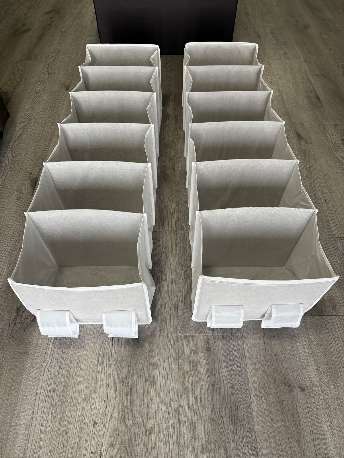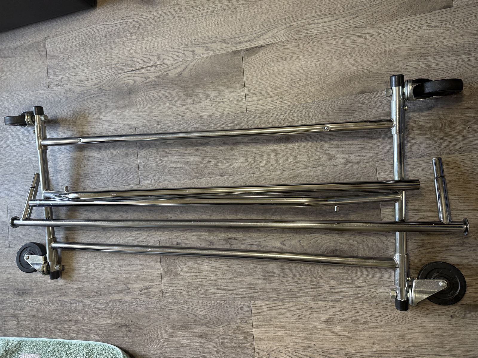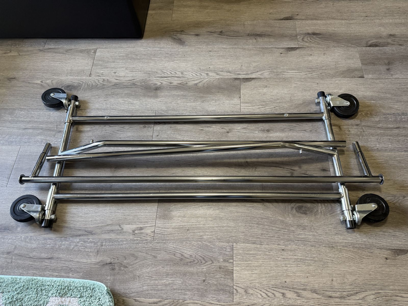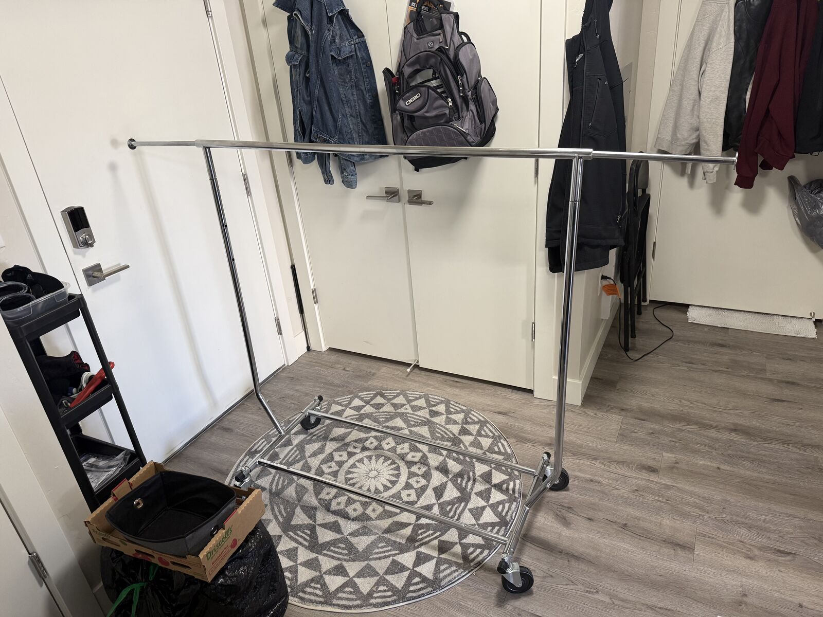 VenmoAdjustable quite large. The cloth shelves hang from the top rod using the velcro you see in the picture.