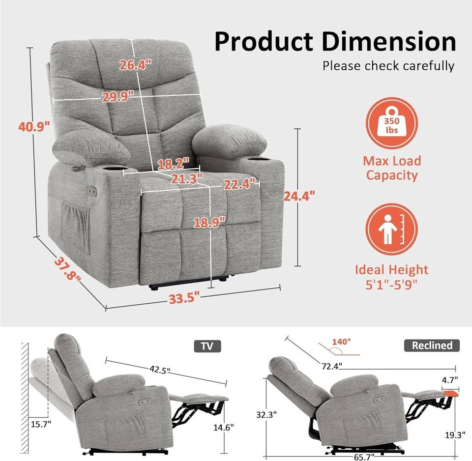 Power Lift Assistance: Counter-balanced lift mechanism to assist the senior stand up easily, smoothly adjust to lift or reclining position you prefer by pressing buttons (Max reclining angle: 140°)