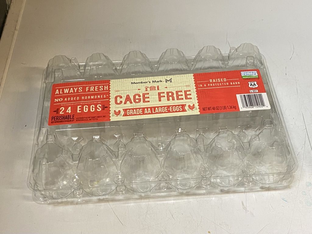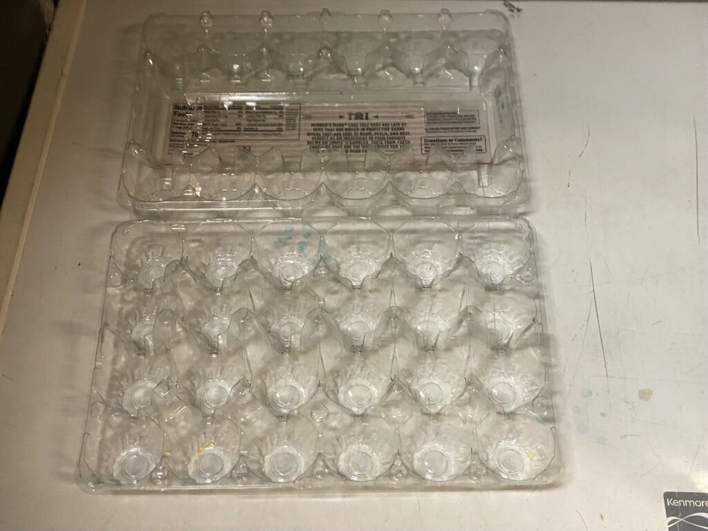 100+ plastic egg containers/trays from Sam’s Club. Officially there are 115, but who’s counting. Each tray holds 2 dozen eggs.