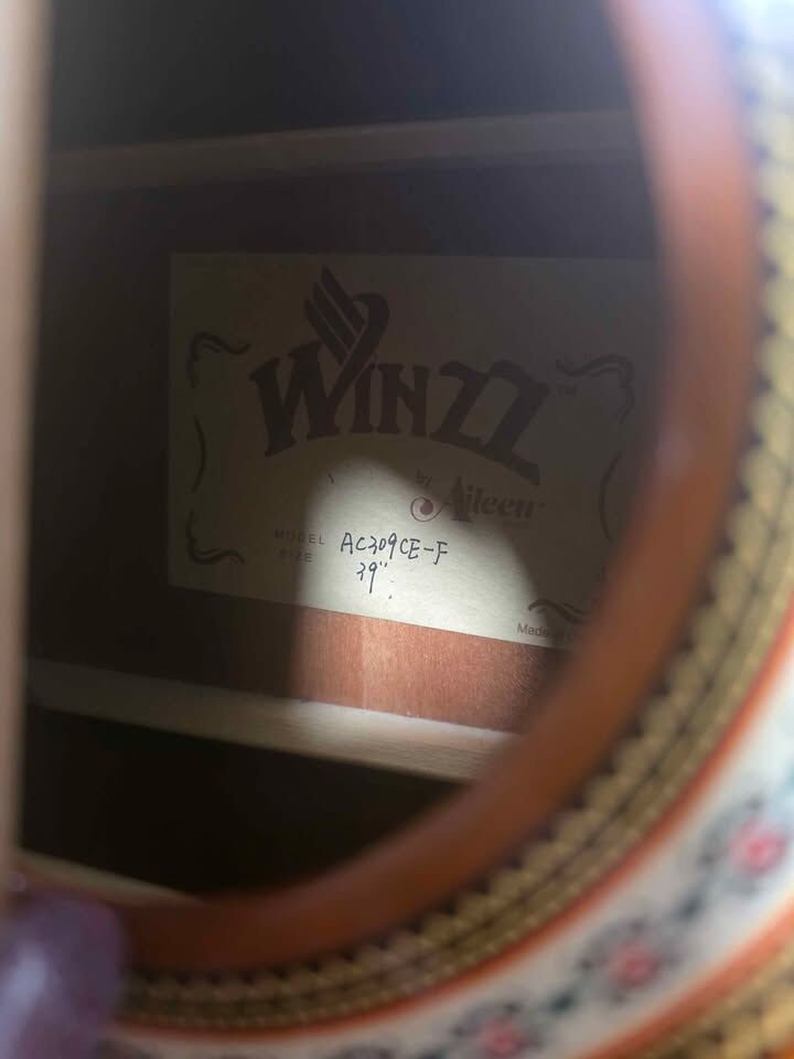 WINZZ AC309CE 39 Inches Cutaway Nylon-string Classical Electric Guitar Size:39 inch Body Style:Classical Cutaway Top Material:Sapele Back Material:Sapele SidesMaterial:Sapele Neck Material:Nato Fingerboard Material:Technical Wood Bridge Material:Technical Wood BindingBlack ABS Machine Head:Chrome Slotted Head Open-Gear Truss rod:Two-way Neck jointDove-tail Bracing StructureFan Strings:6-string,Nylon Electronics:Built-In 4-Band Equalizer Hand Orientation:Righ