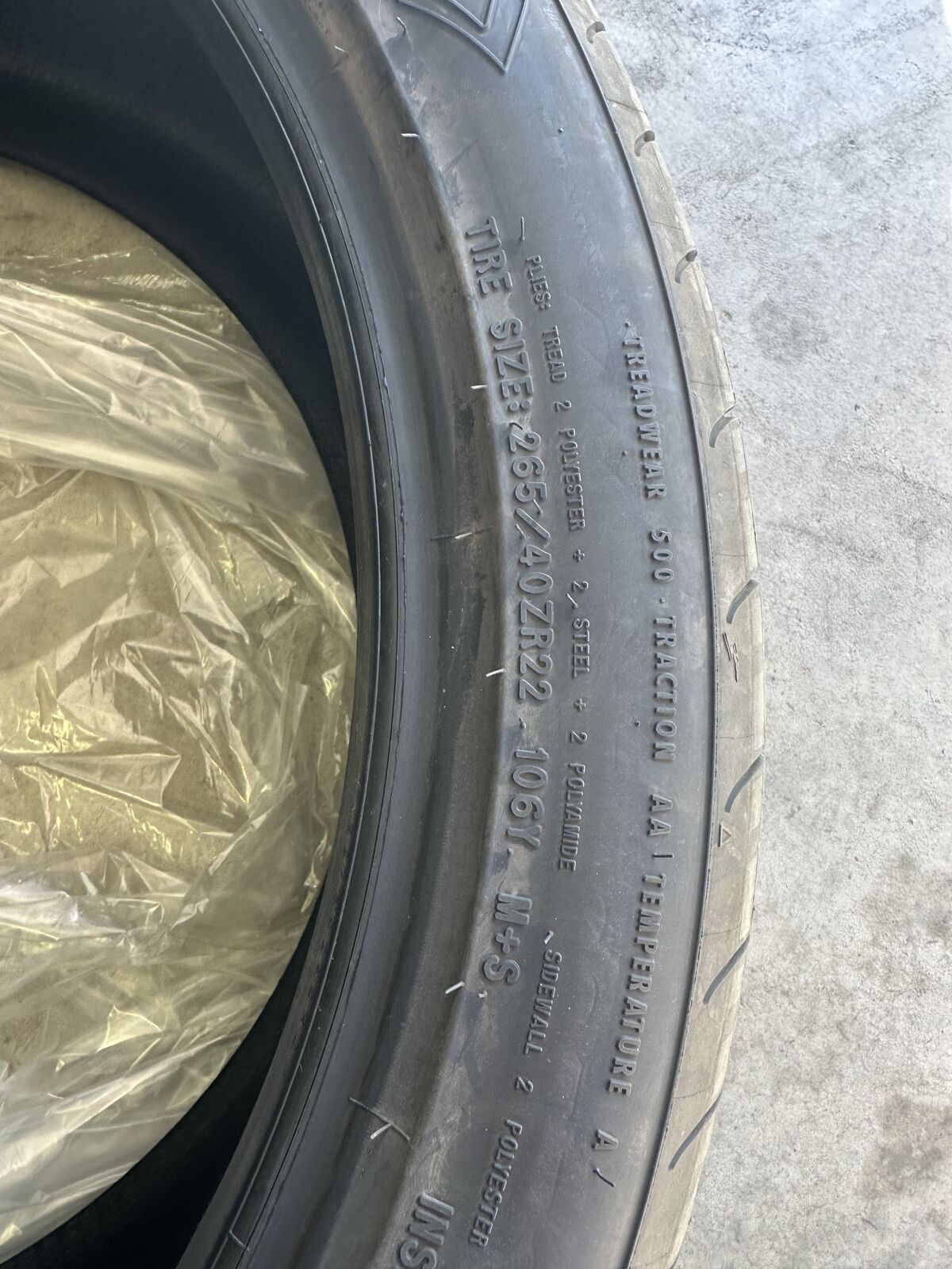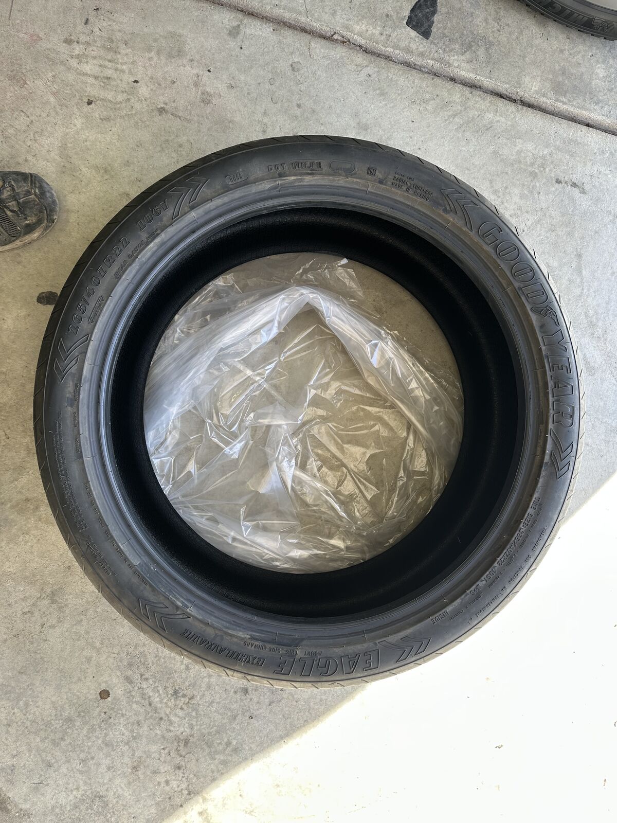 VenmoLike New! Goodyear Eagle Exhilarate Tires - 265/40ZR22 Description: Selling a set of 4 Goodyear Eagle Exhilarate Ultra-High Performance All-Season tires. These were taken off a vehicle shortly after purchase and have less than 300 miles on them. They are essentially brand new with full tread. These are fantastic tires for Utah's climate—top-tier wet/dry traction and much better handling than standard all-seasons. • Size: 265/40ZR22 • Load/Speed Rating: 106Y (Extra Load) • Tread Depth: New (10/32) • Condition: Excellent. No patches, no plugs, no sidewall damage. • MSRP: $1,400+ for the set. Price: $1,000 OBO Location: Riverton, UT Local pickup only.