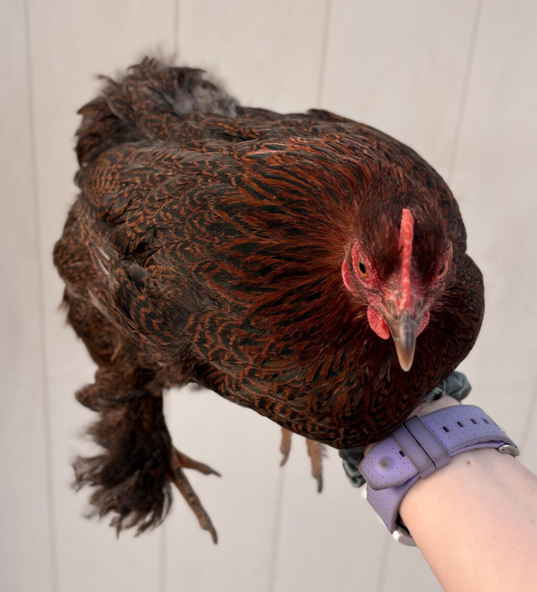 VenmoThis is Martha! She’s a gorgeous girl with striking brown feathers. Shes very fluffy and I just love her!! She is laying. (Not for winter though) she isn’t aggressive but also isn’t tame. If you’re looking for two chickens, I’d recommend getting her good friend Pastel. Text for more details ;) I love her but need to downsize since I’m getting into different breeds. She’s one of my top favs though!! Text if you’re interested please! My number is (385) 329-2663. Thanks!
