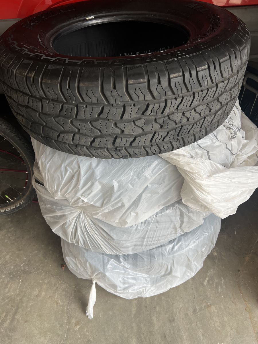 Four Ironman All Country AT2 Tires. Took off a '24 4runner. 265/70R17 Stock 5th Gen 4runner size. All four tires have similar wear.