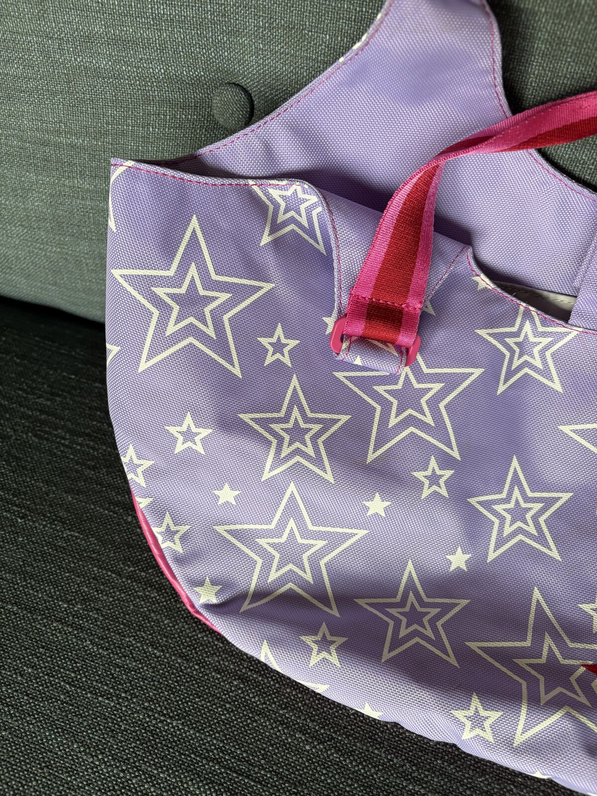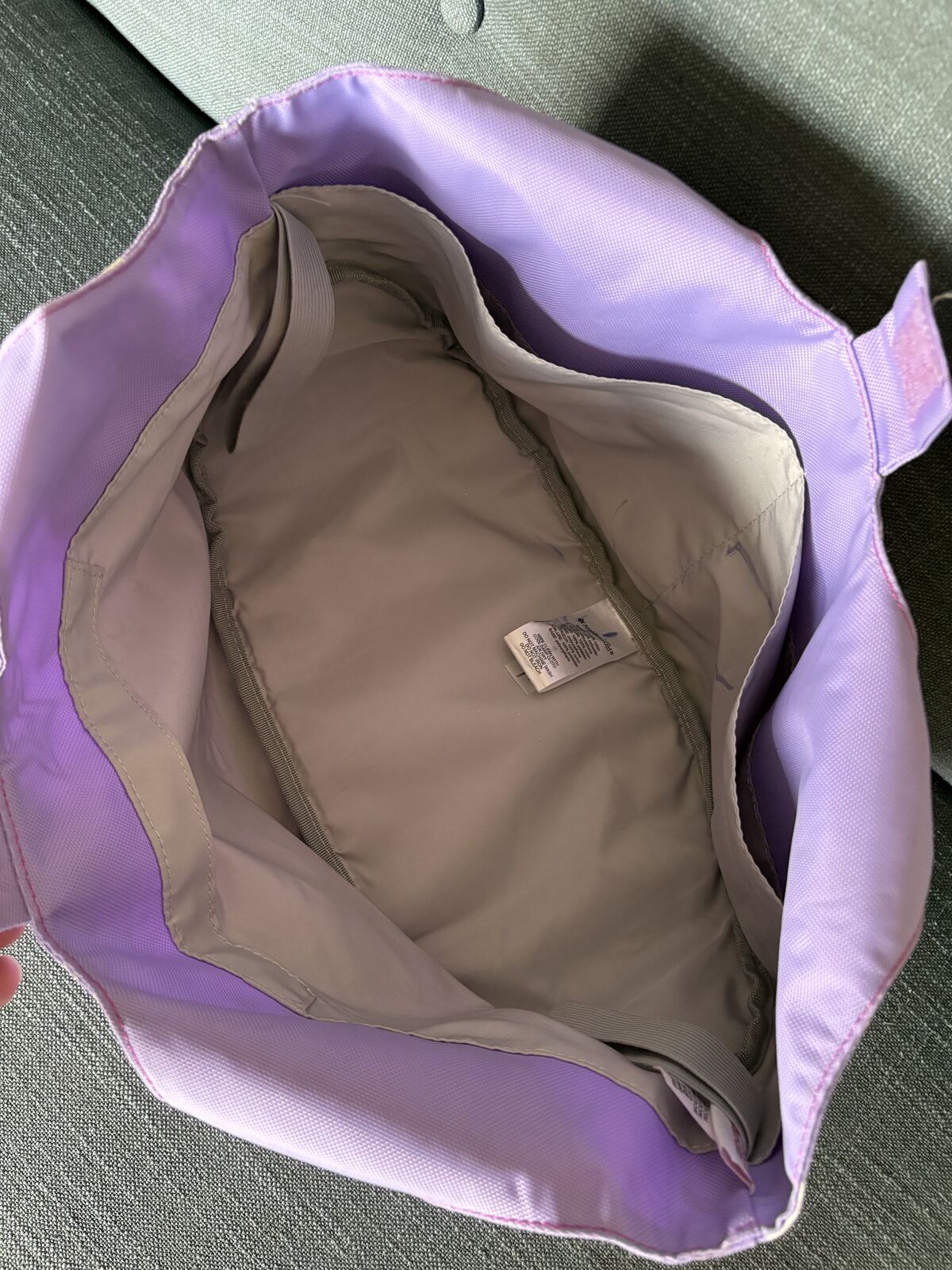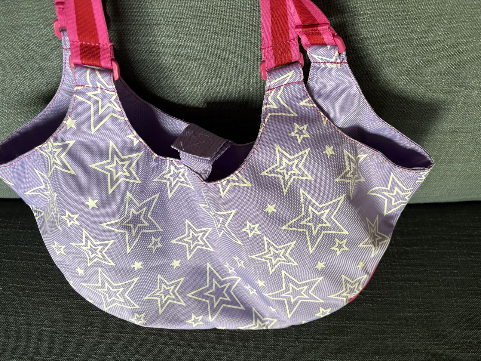 Genuine American Girl Lavender Doll Tote Bag. Lavender/pink/white, pockets inside and out, polyester, fits 2 seated 18” dolls. Very good condition. Text only. Cash or Venmo.
