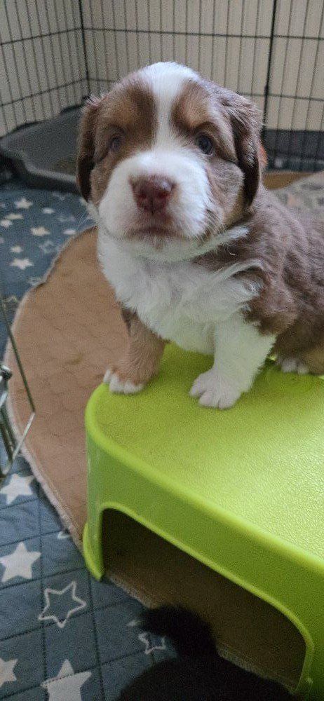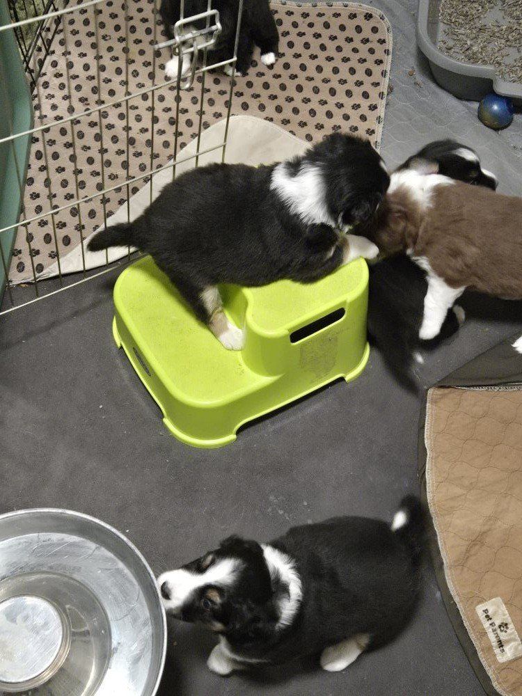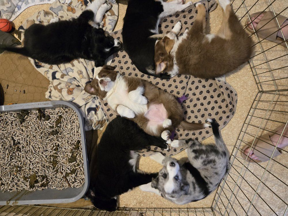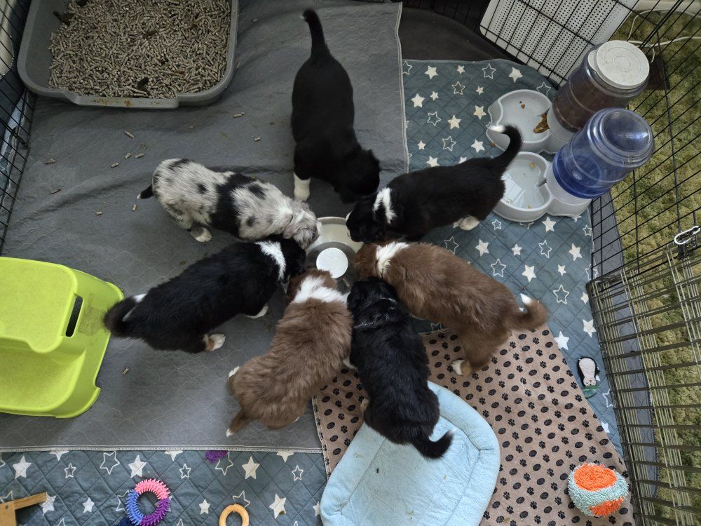 Our Mini Aussie / Australian Shepherd puppies are already doing wonderfully with early potty habits—using a litter box and beginning to signal when they need to go outside.
