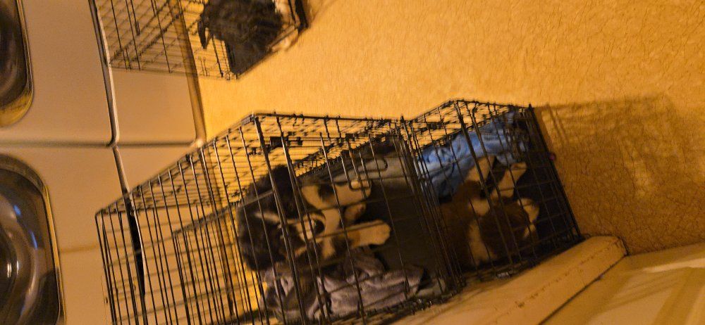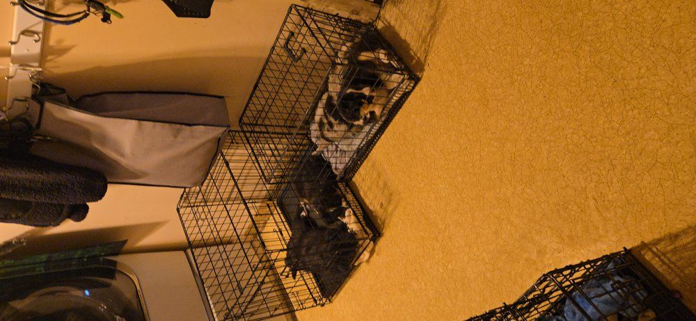They are currently receiving: • Vet check – March 20th • First vaccinations – March 20th • Early crate training – started this week • Early house training – progressing beautifully