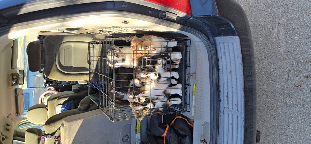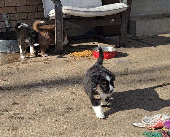 Wren – Female Black Tri Aurora – Female Black Tri (smaller) Zima – Female Red Tri Zane – Male Black & White Silas – Male Black Tri (smaller)