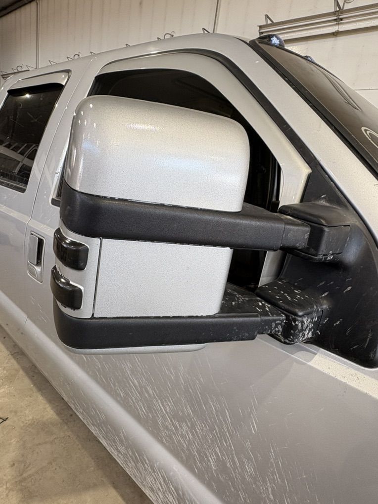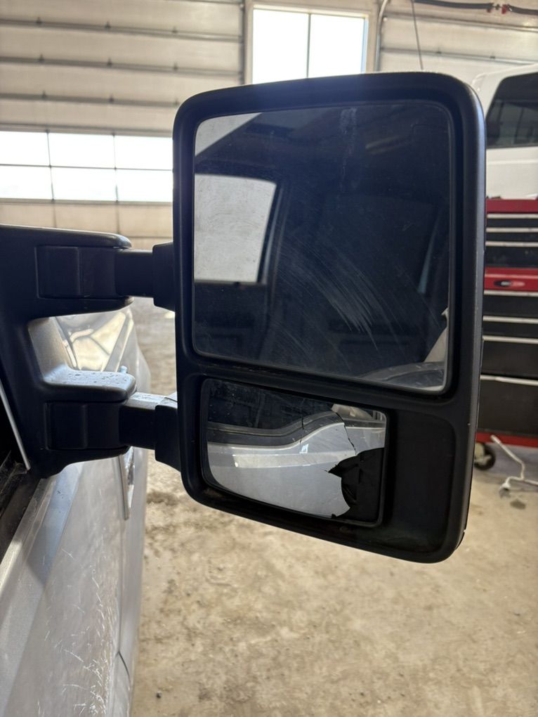 Ford Manual Telescopic Tow Mirrors, USED. The passenger bottom mirror is broke. Have been painted.