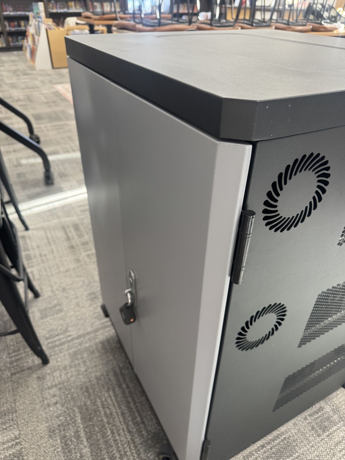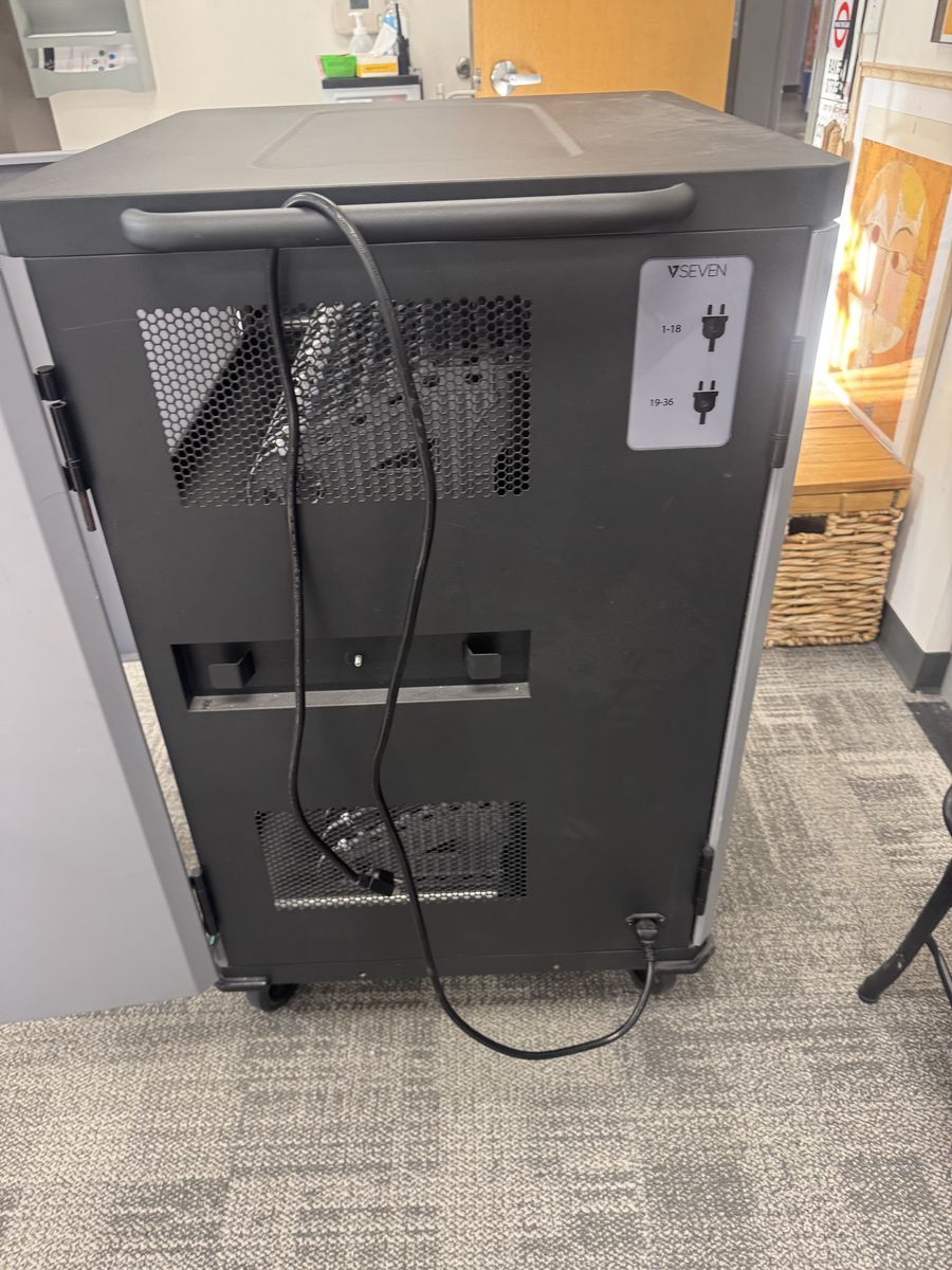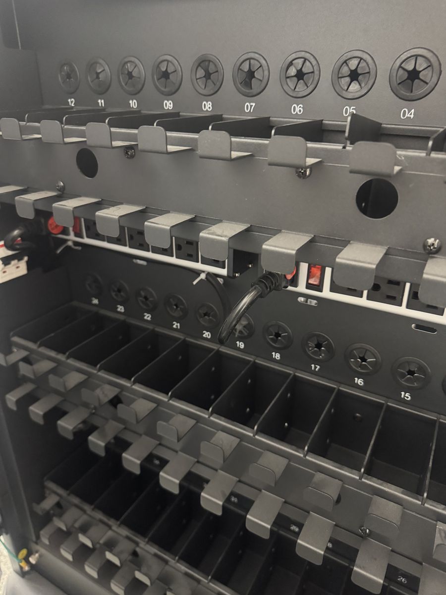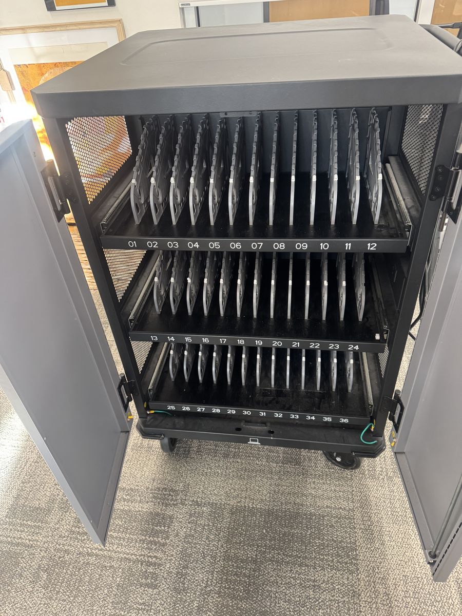 ApplePaySecure mobile charging cart available. Has 36 slots for laptops, Chromebooks or tablets. Each slot has its own power outlet for easy charging. Comes power strips installed. On wheels so it's super easy to move and very smooth. Great for schools, offices, or any place needing to charge multiple devices.