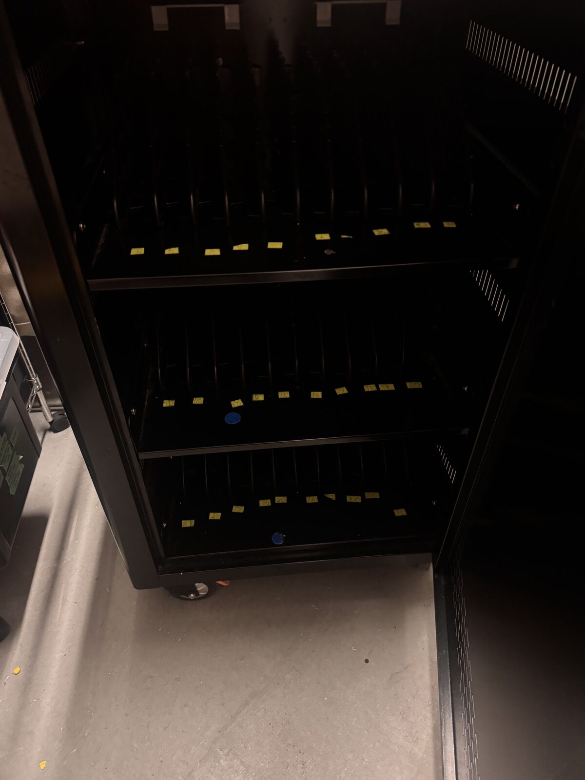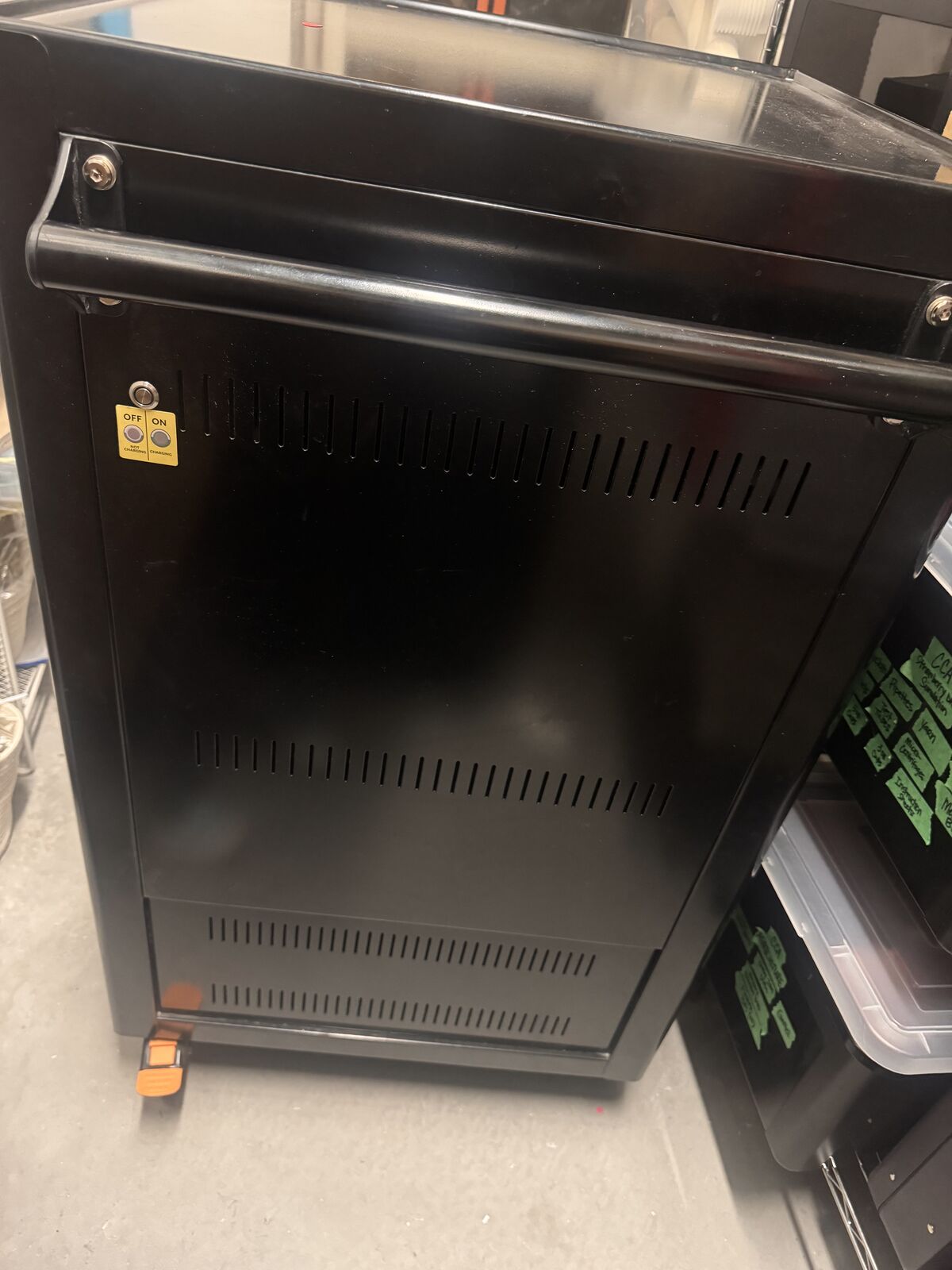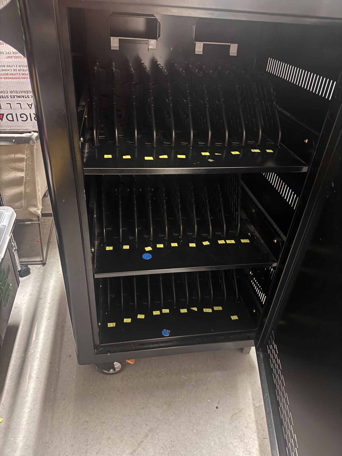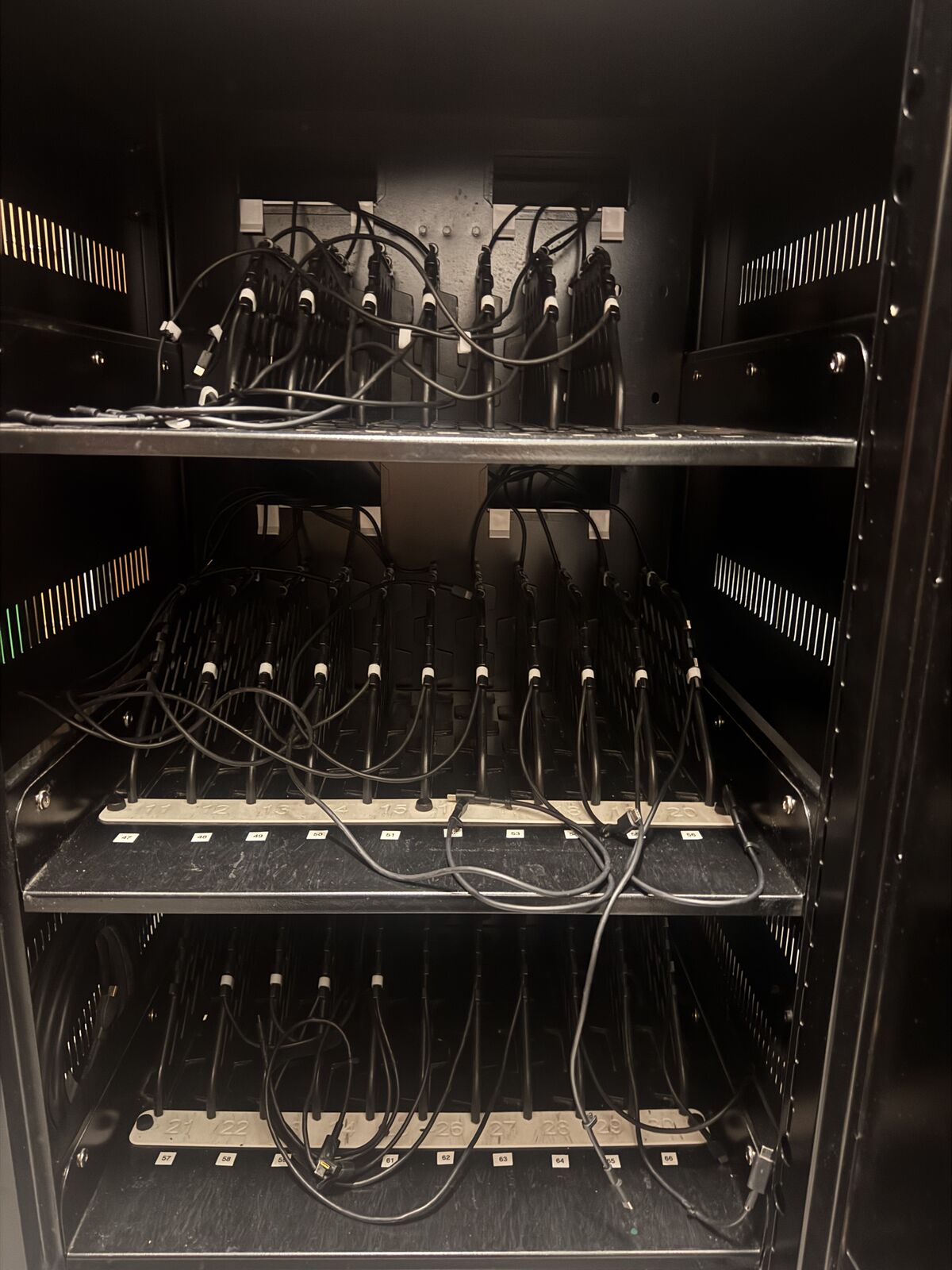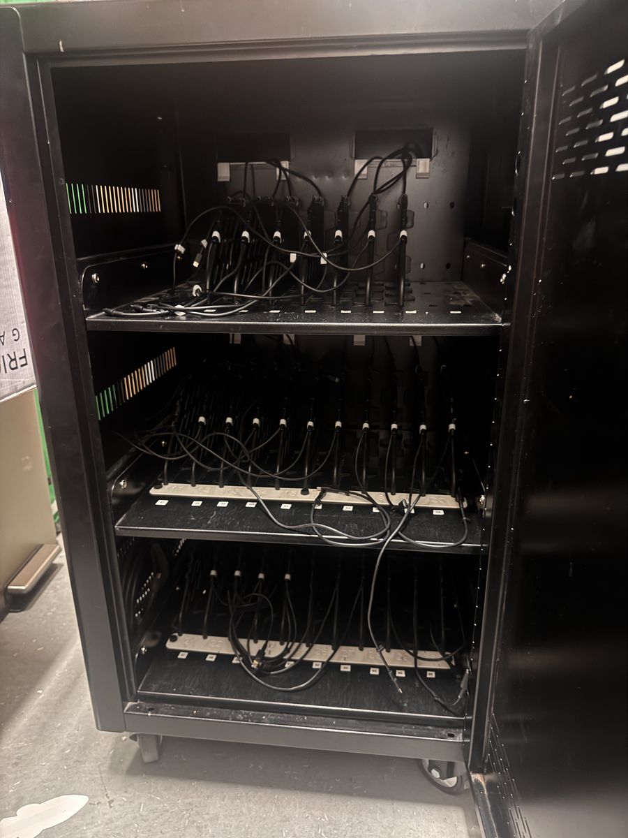 ApplePaySecure mobile charging cart available. Has 30 slots for laptops, Chromebooks or tablets. Each slot has its own power outlet for easy charging. On wheels so it's super easy to move and very smooth. Great for schools, offices, or any place needing to charge multiple devices.